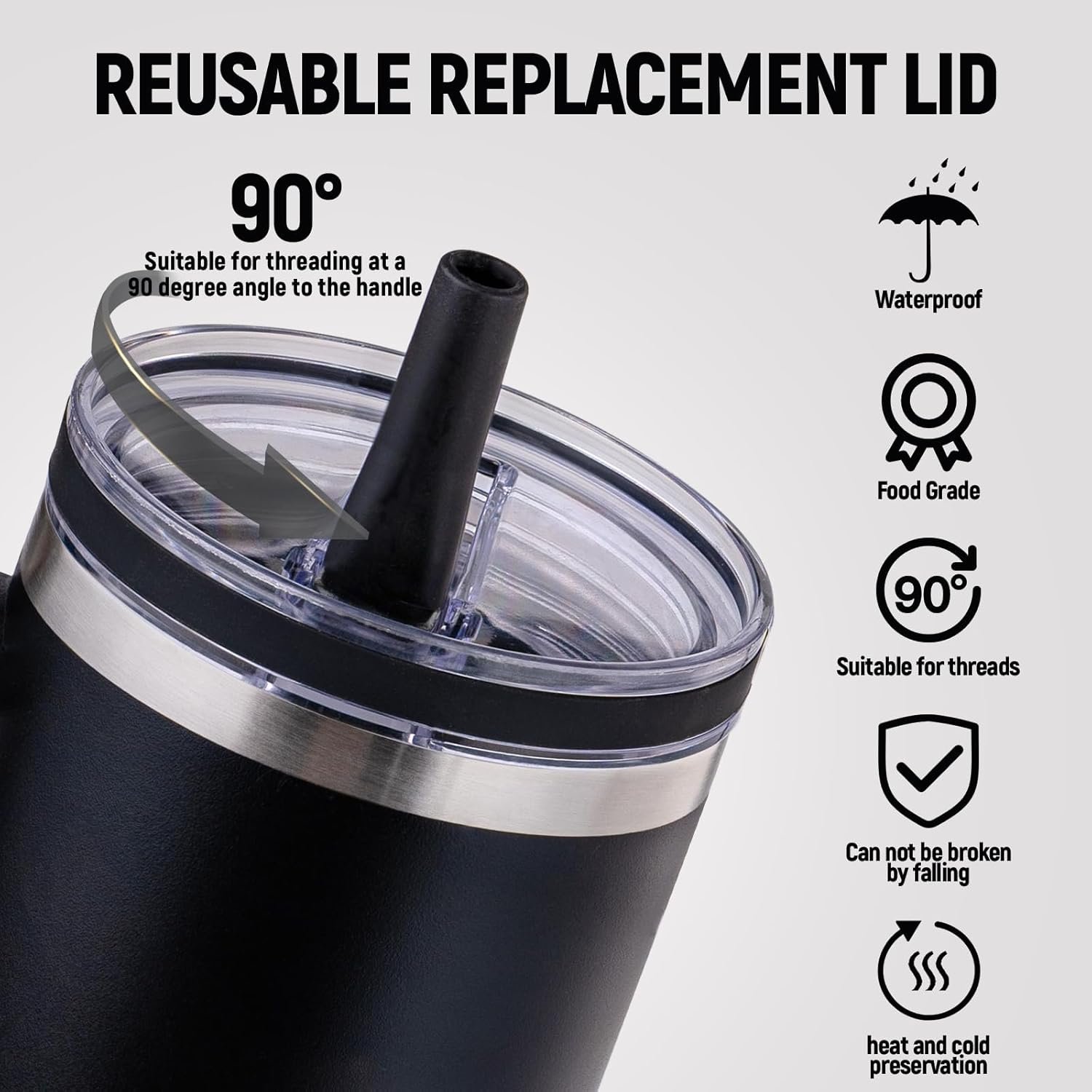 Product Features:After the lid is closed,The Lid Nozzle Will Be Centered (aligned with the Stanley logo), it fits the thread of your Stanley 40oz cup at a 90 degree angle to the handle, just like the original lid, making it more comfortable for you to drink.Your perfect stanley cup accessories.
