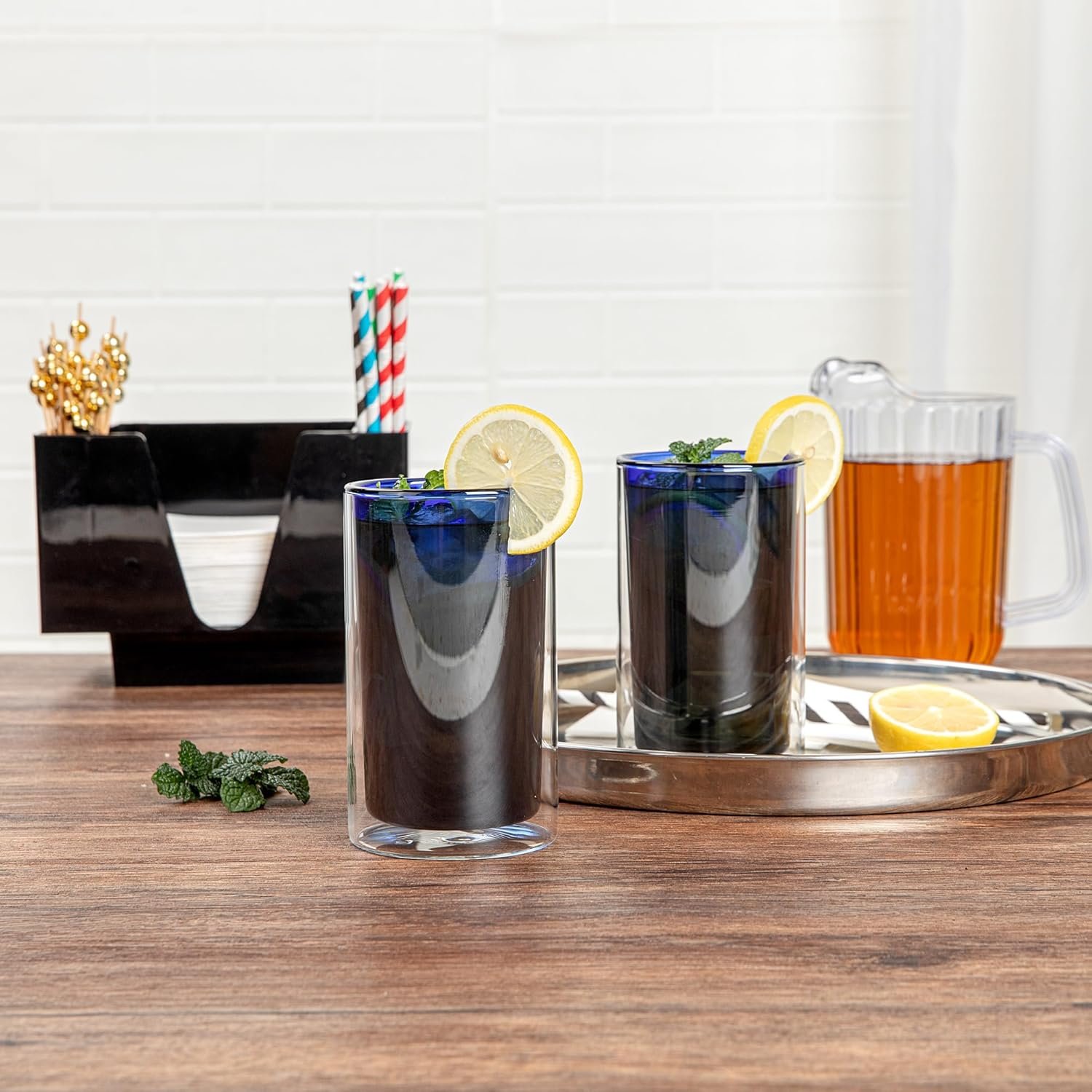 Ensure optimal drink presentation with our Forma Professional Insulating Glass Tumbler. This glass tumbler features a double-wall design that maintains drink temperatures longer, making it ideal for both hot and cold beverages. Crafted from premium borosilicate glass, this borosilicate tumbler withstands everyday use and resists thermal shock. The elegant blue tint of this double wall glass adds sophistication to your table settings, enhancing the visual appeal of your drinks. Additionally, its microwave-safe feature allows for the quick reheating of beverages, providing convenience in fast-paced operations. Measuring 3.2 inches in diameter and 5.3 inches in height, it accommodates a 13.6-ounce capacity, perfect for serving a variety of drinks from iced teas to signature cocktails. Upgrade your beverage service with this versatile glass tumbler that combines durability with style. Each order includes 2 Forma Professional Insulating Glass Tumblers.