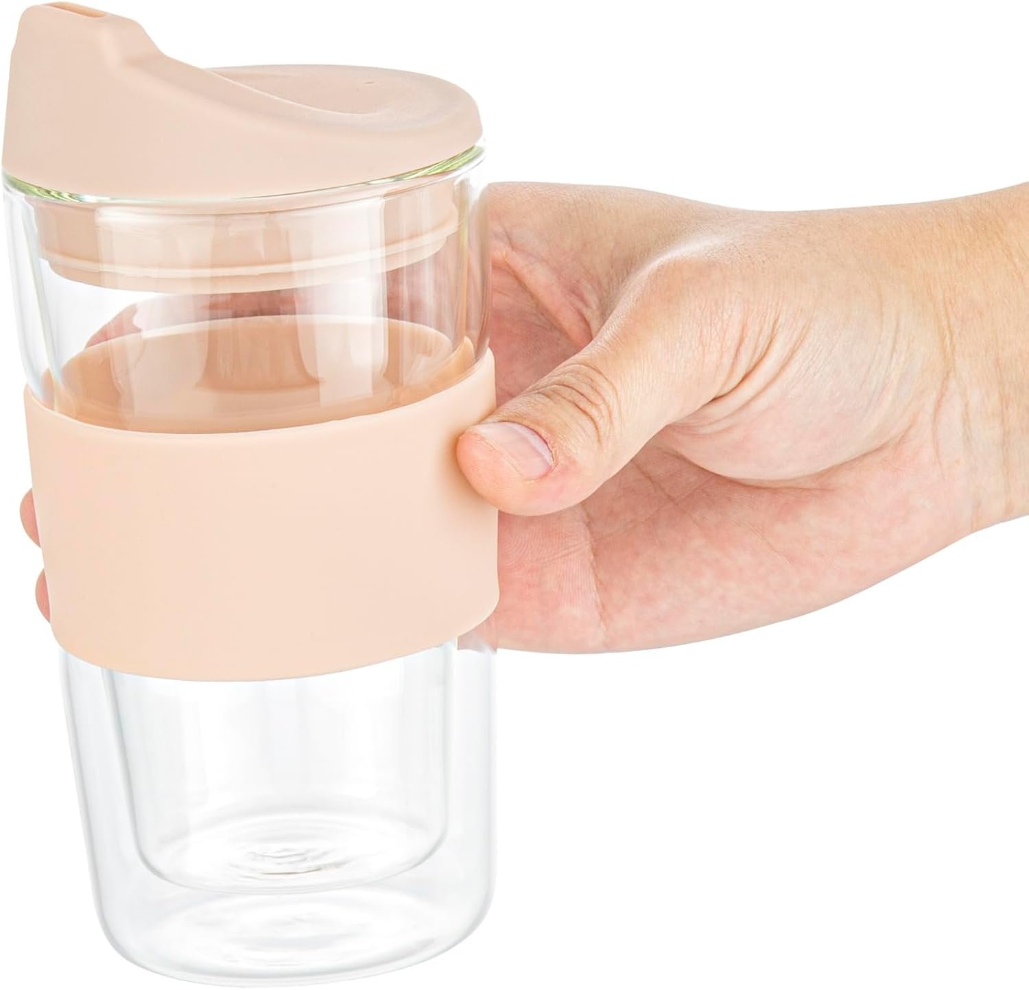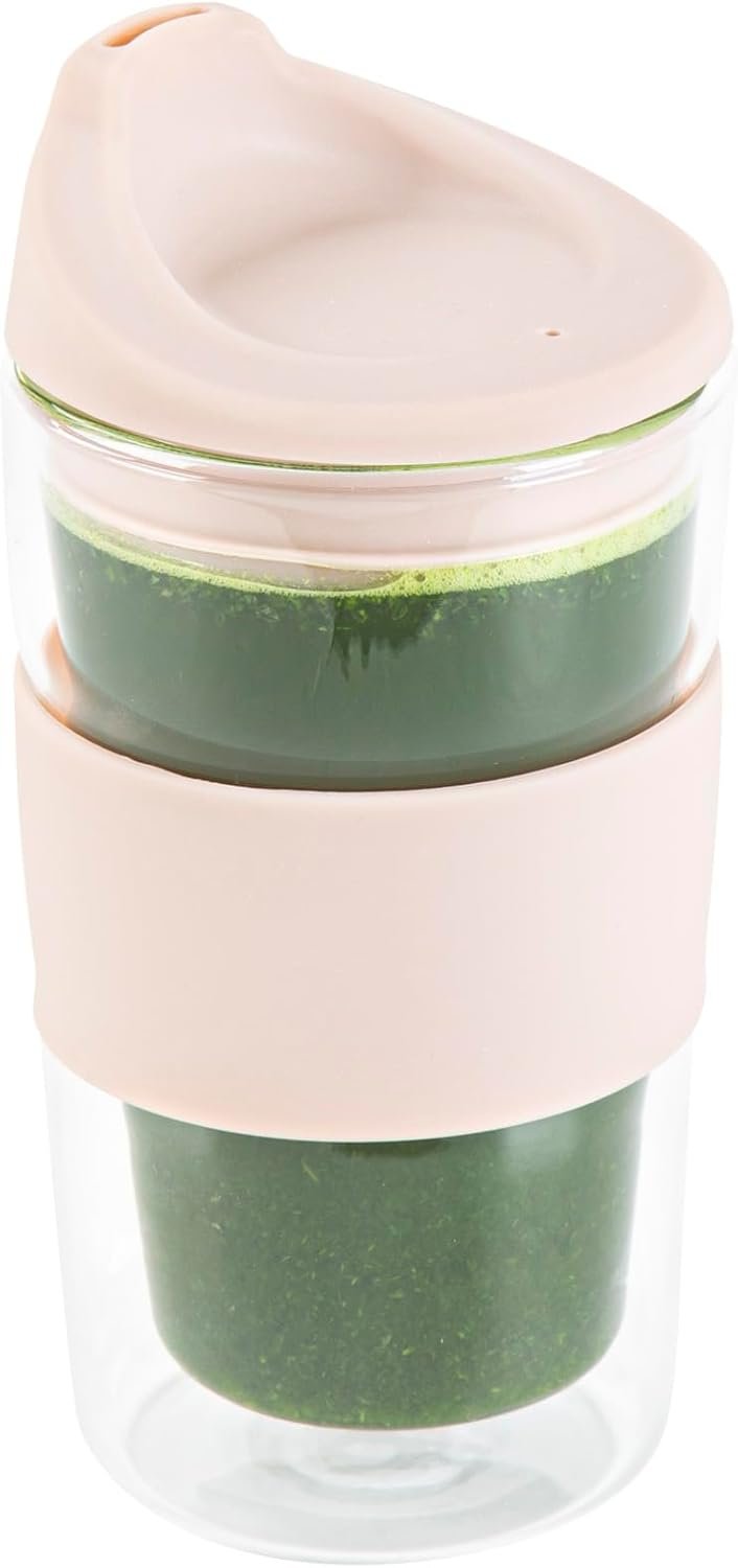 INCLUDES 1 GLASS TRAVEL MUG: Includes one reusable coffee mug with lid and a silicone sleeve, offering a stylish, eco-conscious alternative to disposable cups for everyday use.
