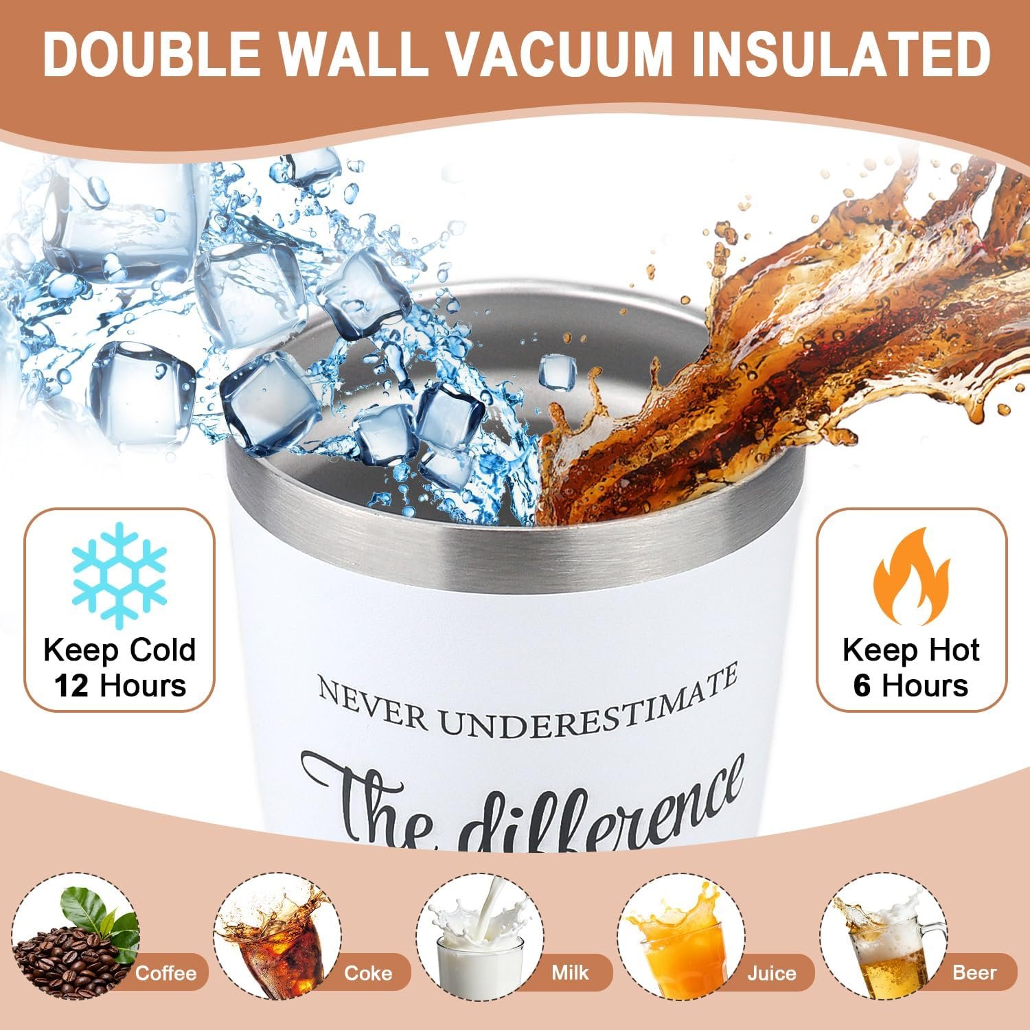 Enjoy Perfect Temperature: Advanced vacuum insulation keeps drinks hot for 6 hours and cold for 12 hours. Perfect for water, coffee, cocktails, juice, or beer. Enjoy the perfect sip anytime, anywhere, embracing the carefree retirement lifestyle