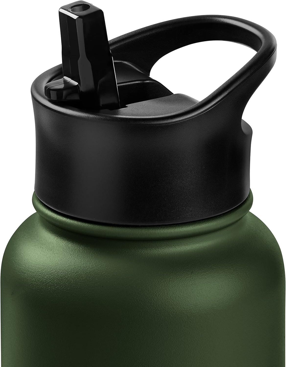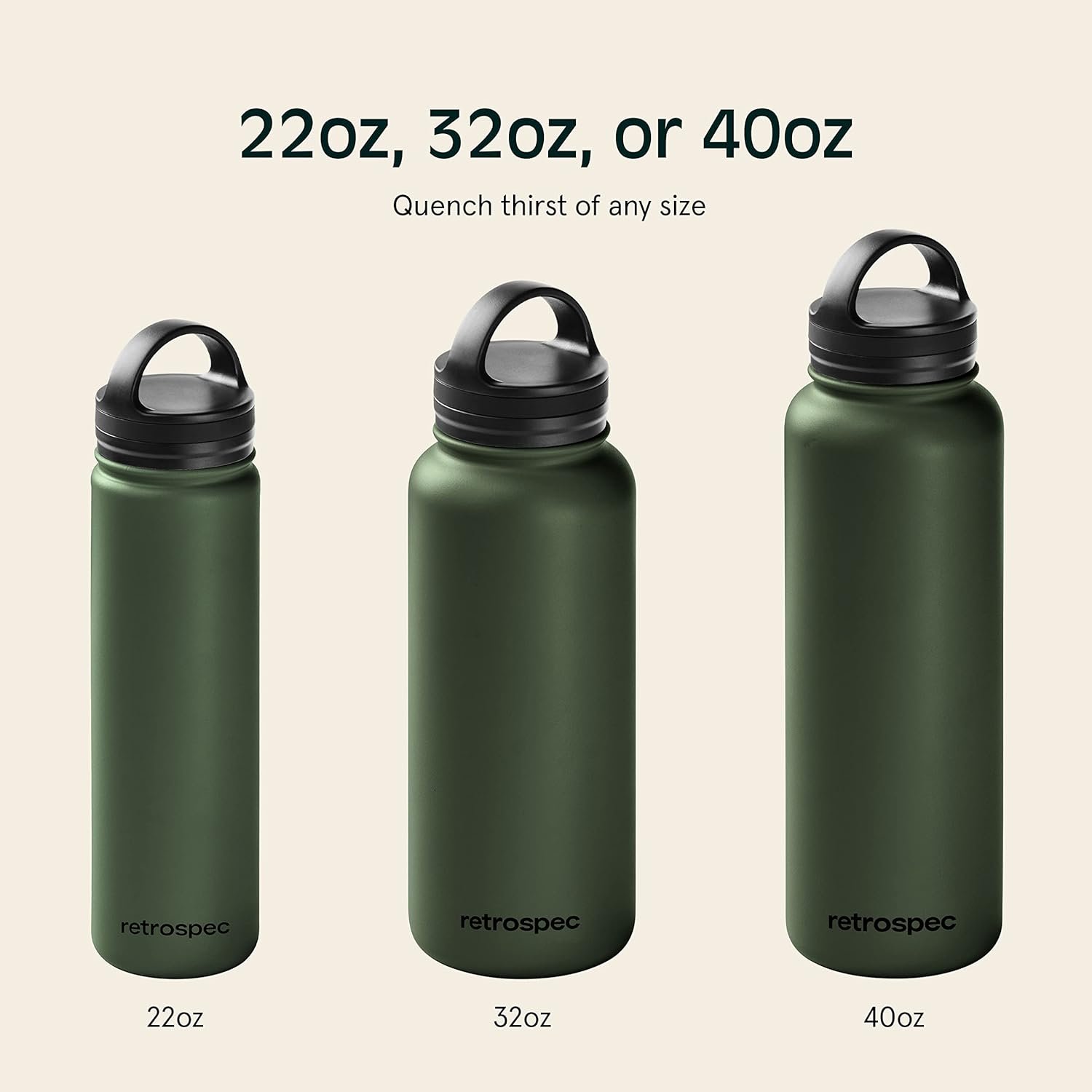 Retrospec Alder Insulated Water Bottle with Straw Lid & Handle Cap – Stainless Steel Wide Mouth Double-Wall Vacuum Insulated Thermos – BPA Free Leakproof Canteen
