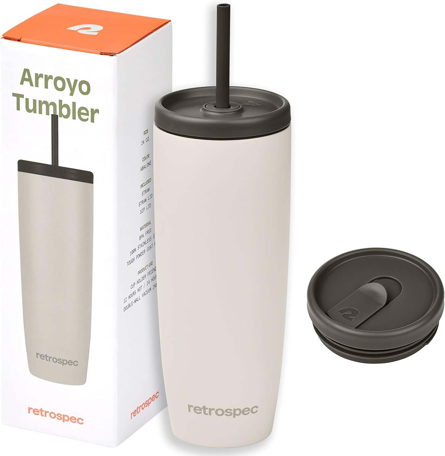 Retrospec Arroyo Stainless Steel Tumbler with Lid and Straw – Reusable Insulated Tumbler Cup – Iced Coffee Travel Mug – Double Walled Thermal Tumblers