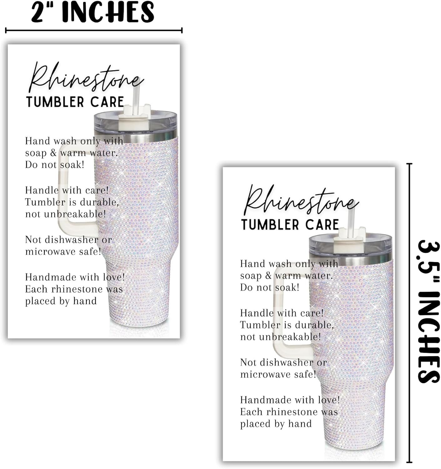 Rhinestone Bling Jeweled Cup Tumbler Custom Mug Care Instruction Cards 50 pk 2×3.5” Tags Stickers Washing Instructions Glitter DIY Price Tags