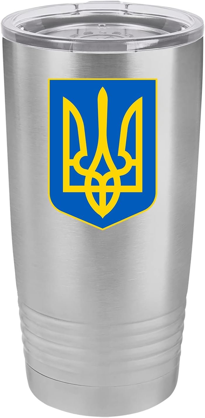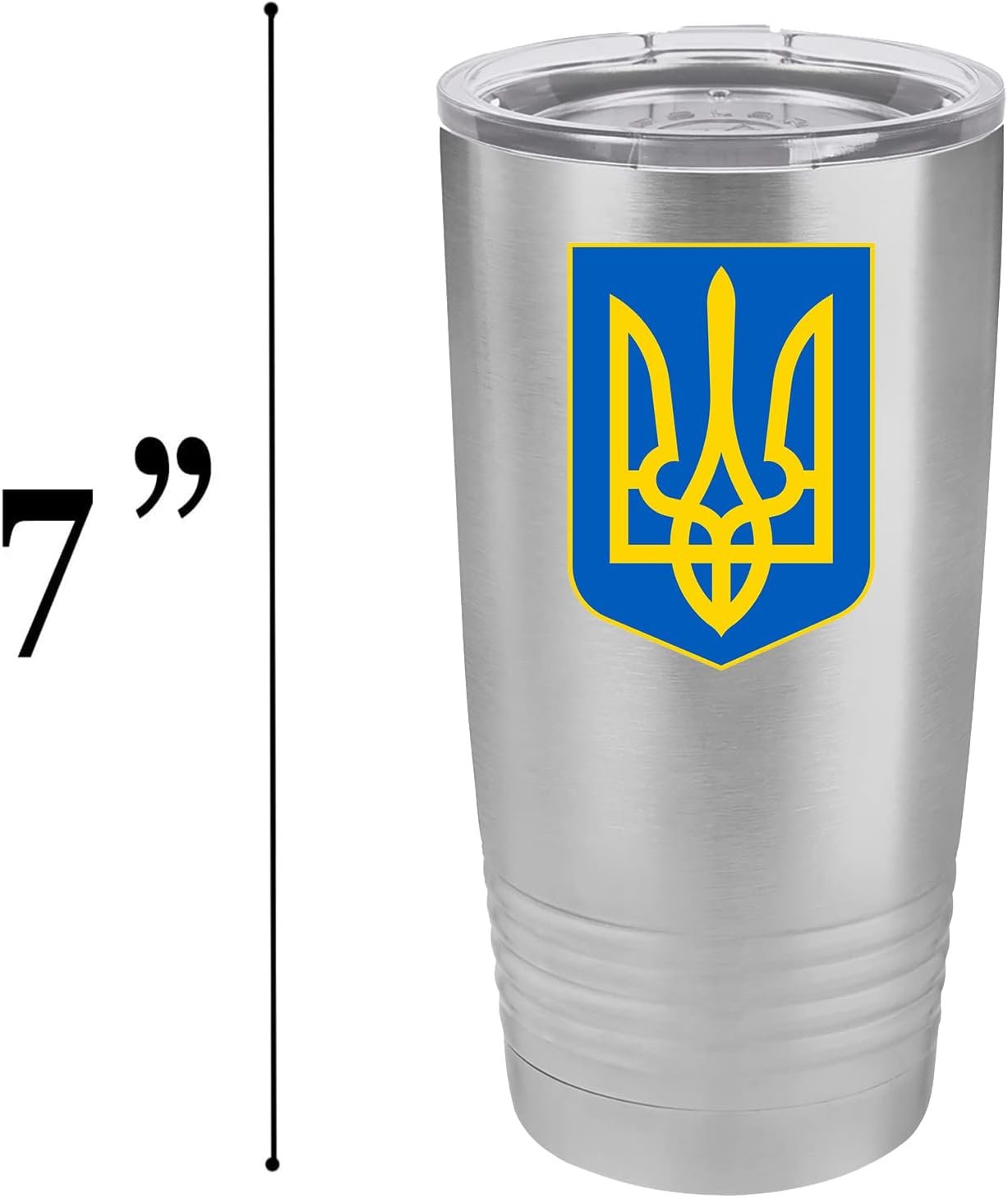 Rogue River Tactical Ukraine Flag 20 Oz. Stainless Steel Travel Tumbler Mug Cup w/Lid Vacuum Insulated Hot or Cold Coat Of Arms