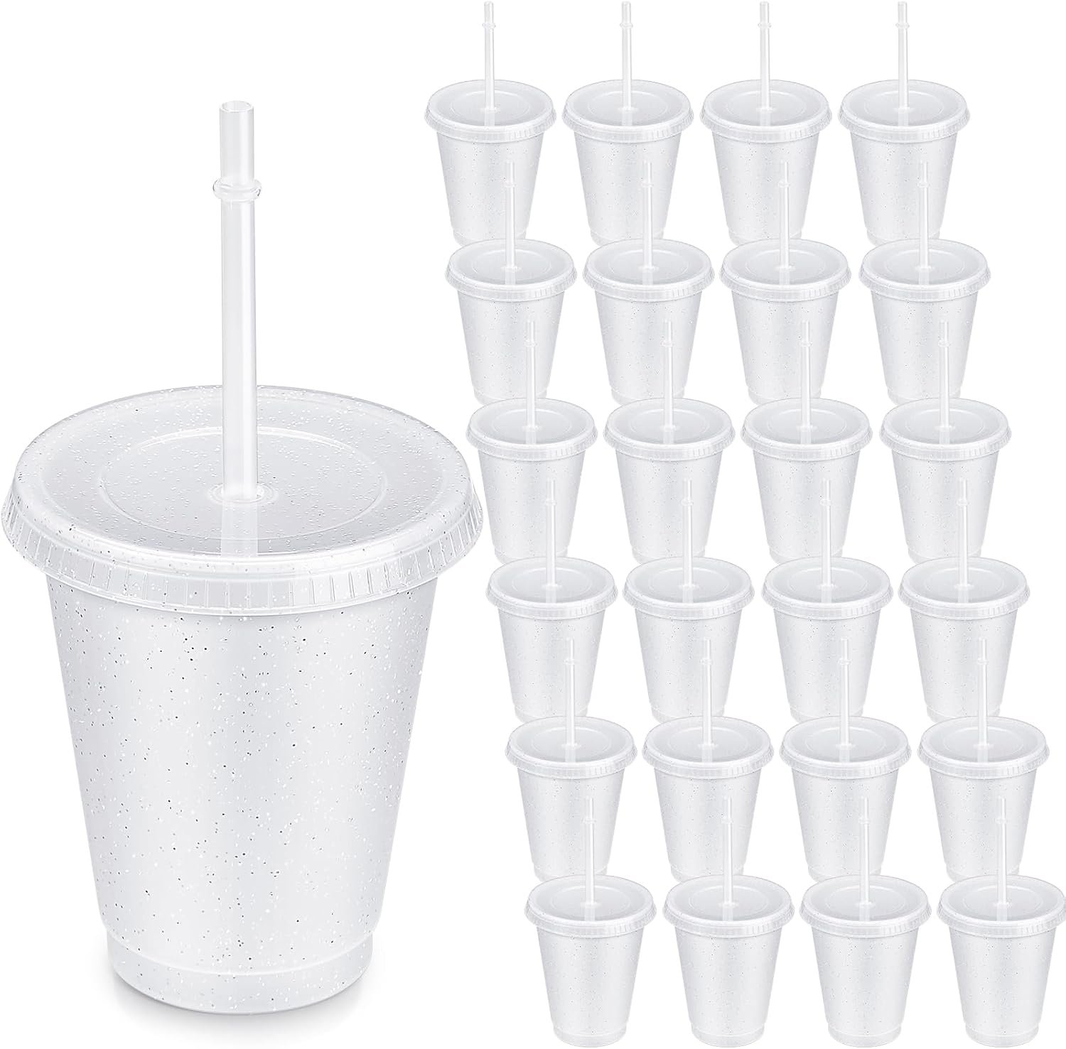 Roshtia 24 Pack Plastic Tumblers with Lid and Straw Reusable Cups Bulk Water Bottles Iced Coffee Travel Mug Cup for Birthdays Party Juices Adults Kids (White,16 oz)