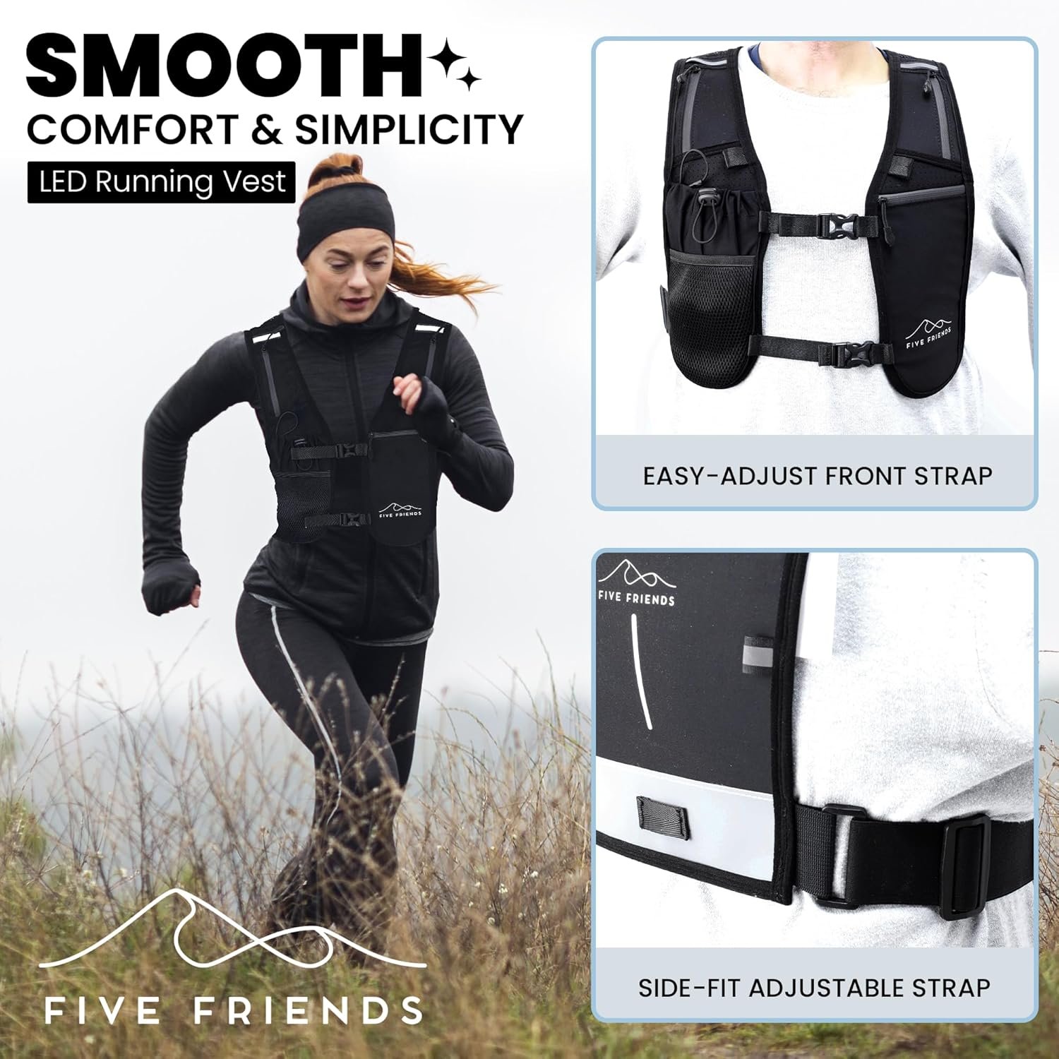 【Adjustable Unisex Design】- The Five Friends Unisex Running Vest is for both men and women, it comes with 500-ml water bottle. Engineered with ultra-breathable 3D mesh and reinforced Neoprene, it offers featherlight comfort and rugged durability. Whether you’re charging up mountain paths or grinding through marathons, Our reflective running vest adapts to your shape and your ambition for both men and women who refuse to quit.