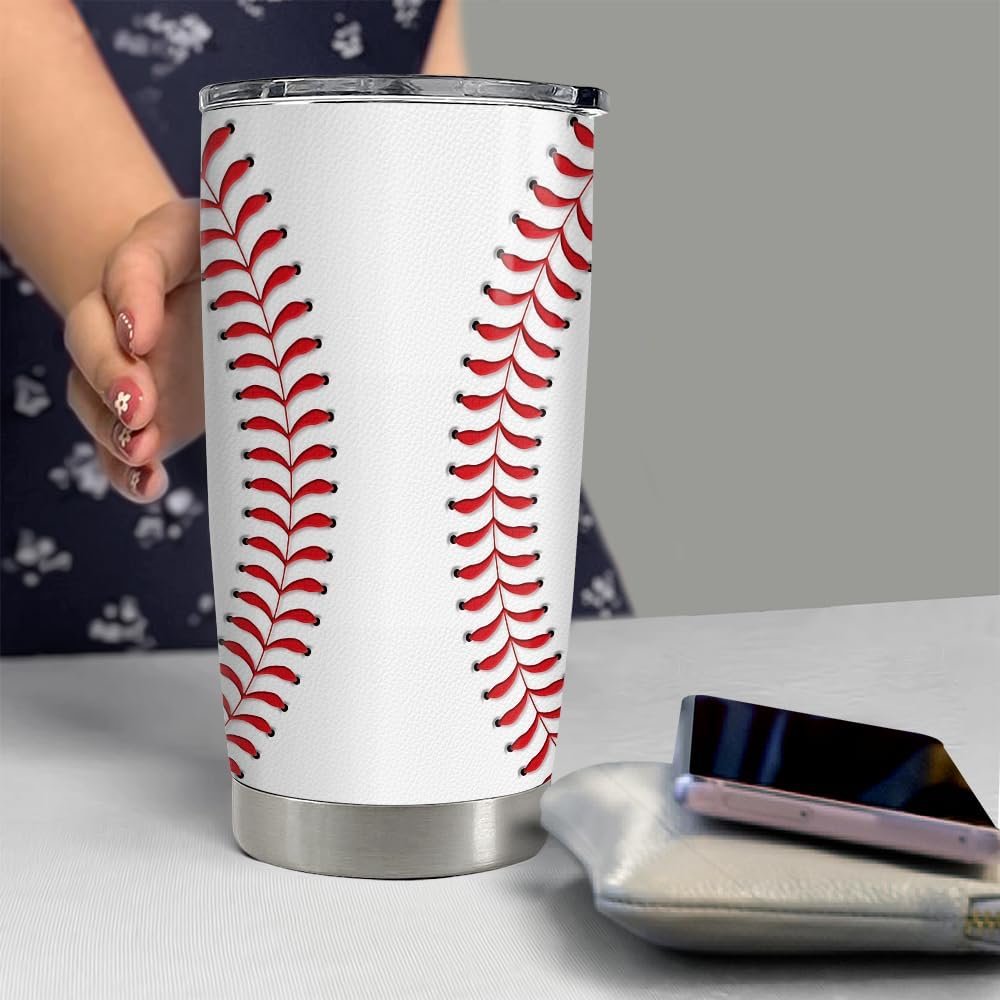 SANDJEST Baseball Tumbler Cup 20oz Stainless Steel Insulated Travel Mug Tumblers Cup Baseball Gift for Women Men Mom Gifts for Birthday Christmas