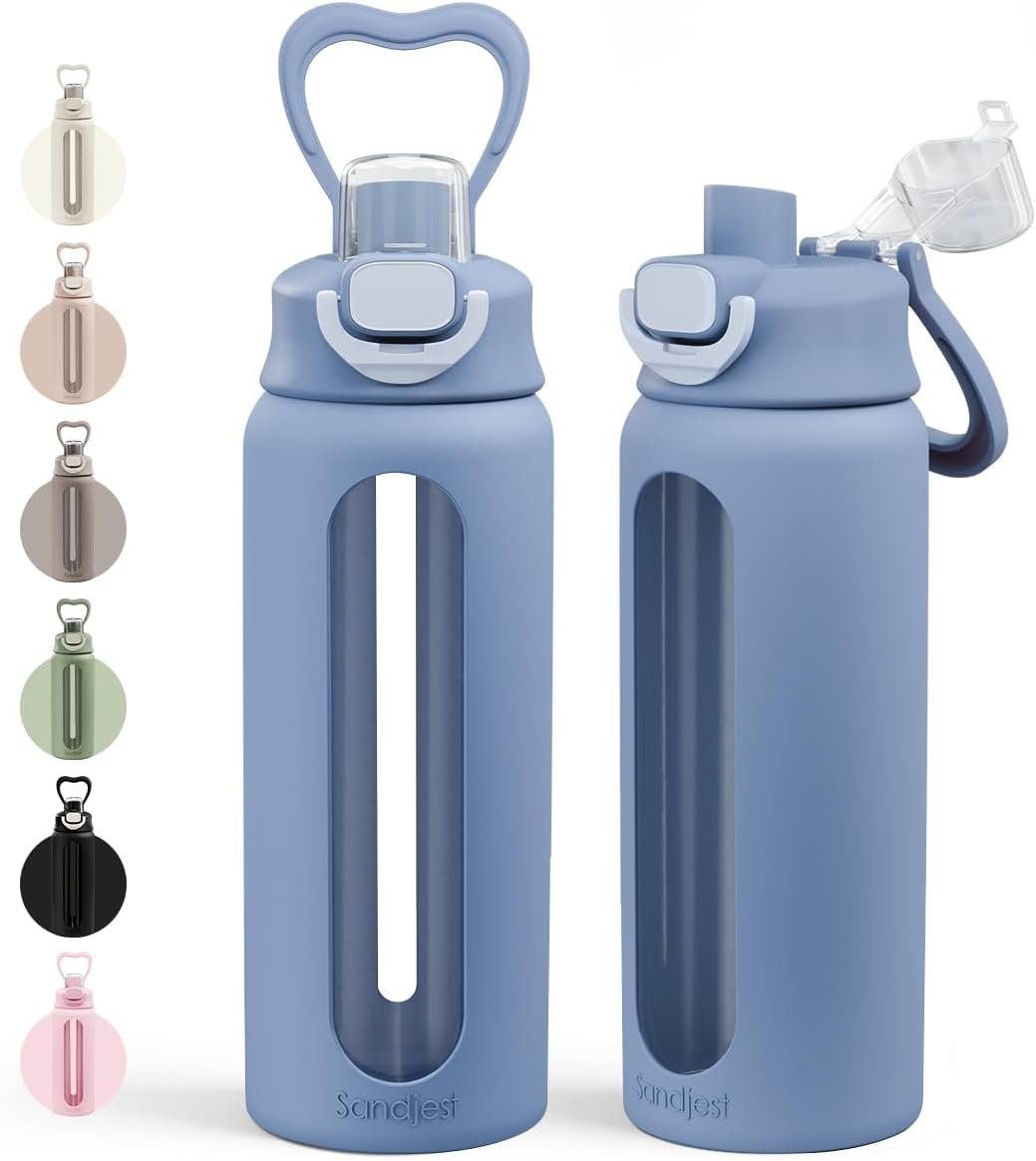 Sturdy silicone sleeve: the durable silicone sleeve offers both protection and a comfortable grip, keeping your glass bottle safe during use. In additional, with capacity and time markers, it serves as a helpful reminder to stay hydrated throughout the day