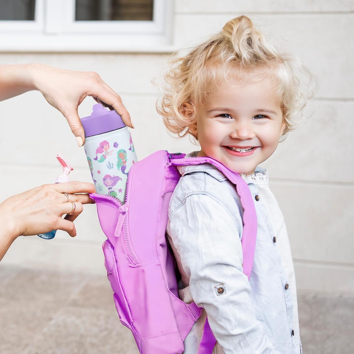 SANDJEST Kid Water Bottle 12oz with Straw Lid – 2-Pack Insulated Stainless Steel Water Bottles for Kids Girls – Travel Cup for School Sports, Rainbow & Mermaid