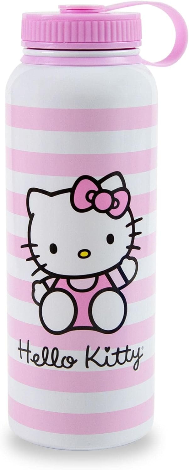 Sanrio Hello Kitty Pink Stainless Steel Water Bottle With Leak-Resistant Lid | Double-Walled Metal Sports Jug | Holds 42 Ounces