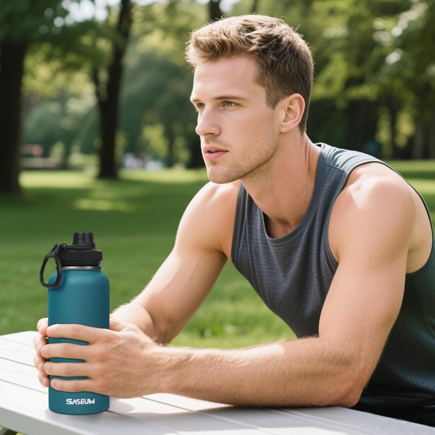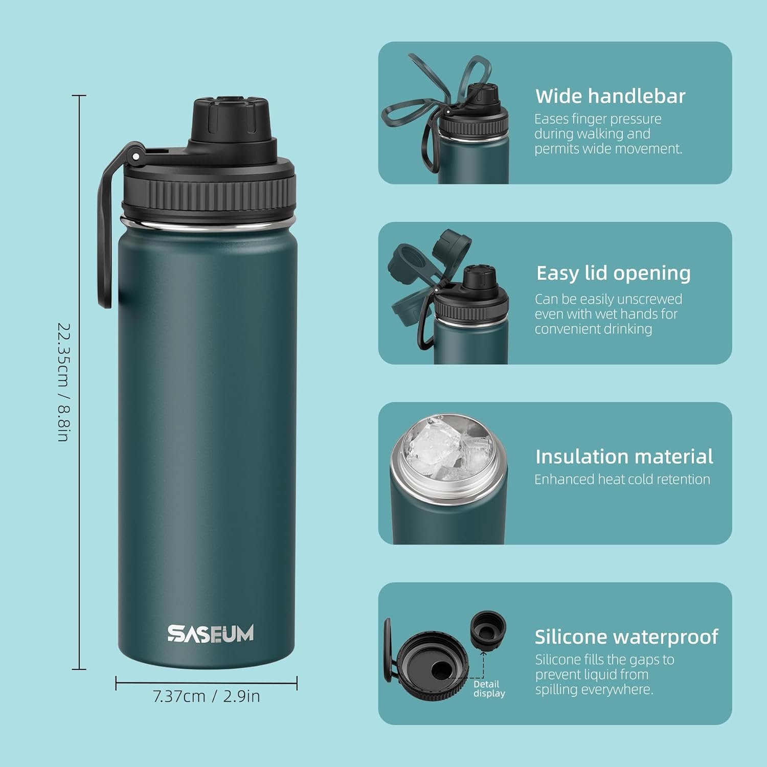 SASEUM Kids Sport Water Bottle 18oz Stainless Steel Double Wall Vacuum Thermal Mug with Leak Proof Spout Lids, Wide Mouth Metal Insulated Water Jug for Gym and Travel,Blue