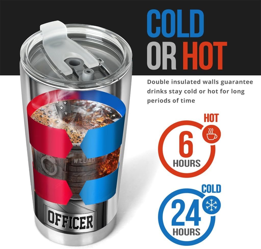 Serve And Protect Personalized Police Officer Tumbler Custom Name Law Enforcement Gift For Him Coffee Travel Mug Retirement Graduation Present Sheriff Deputy Stainless Steel Insulated Cup