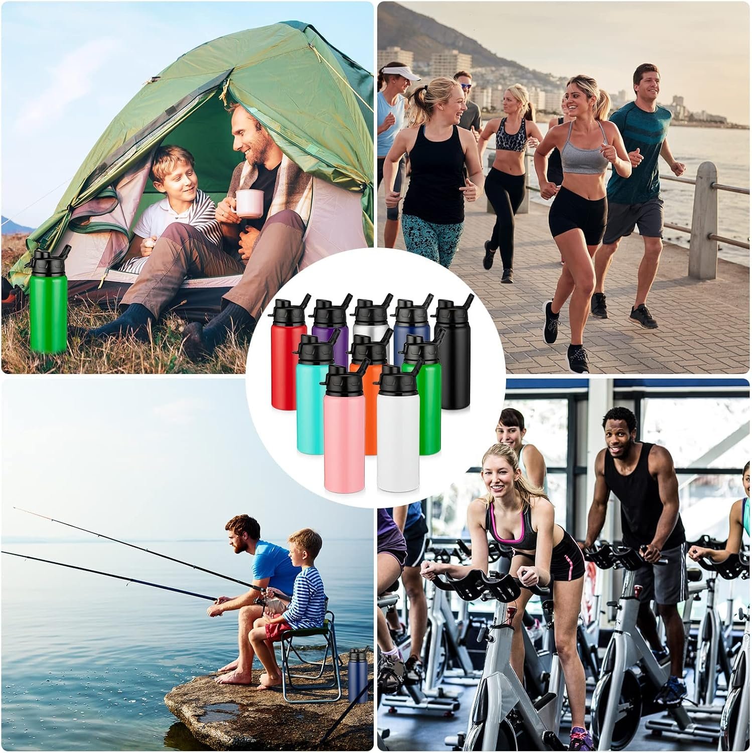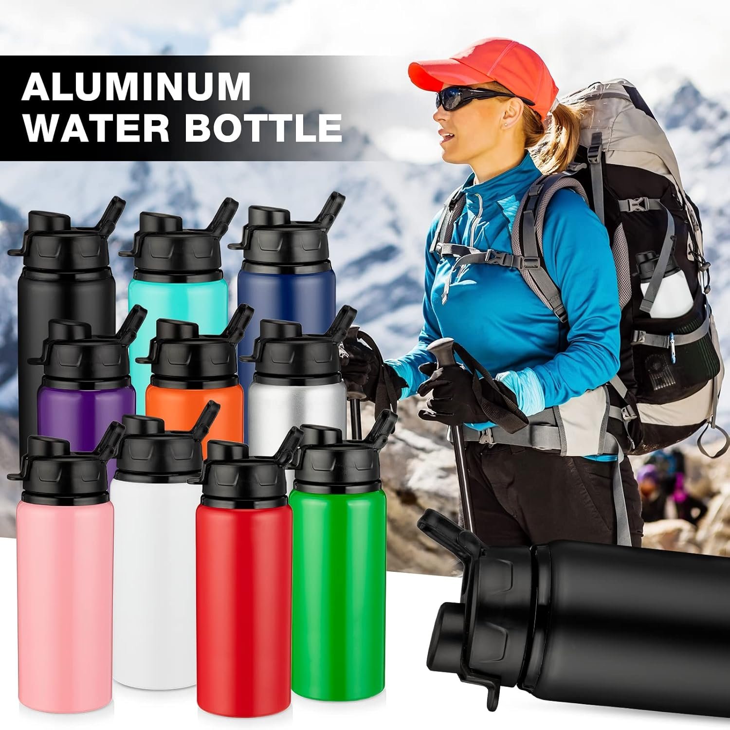Widely Applicable: the reusable water bottles bulk with spout lids and reliable metal material can be applied as bike water bottles, travel water bottles, sports water bottles, etc., ideal for fitness, cheerleading, hiking, sporting events, gym, school, work, camping, fishing, travel, running, cycling, playing baseball, basketball, soccer and so on