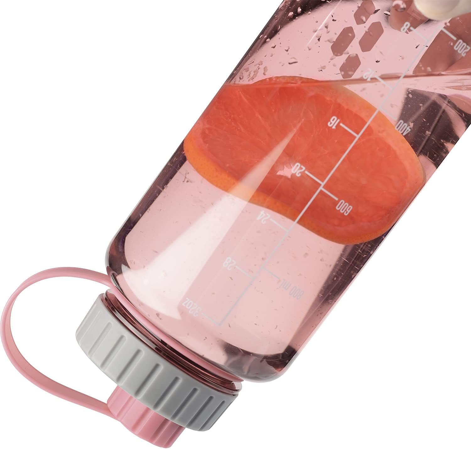 【Easy To Clean Water Bottle】— Great water bottle for hydration. Our ounce marked bottles are durable enough for office,hiking, Fitness Yoga or Exercise at home. and rugged camping trips.Tethered strap for convenient carrying and traveling. Packing with box. Dishwasher safe on top rack.
