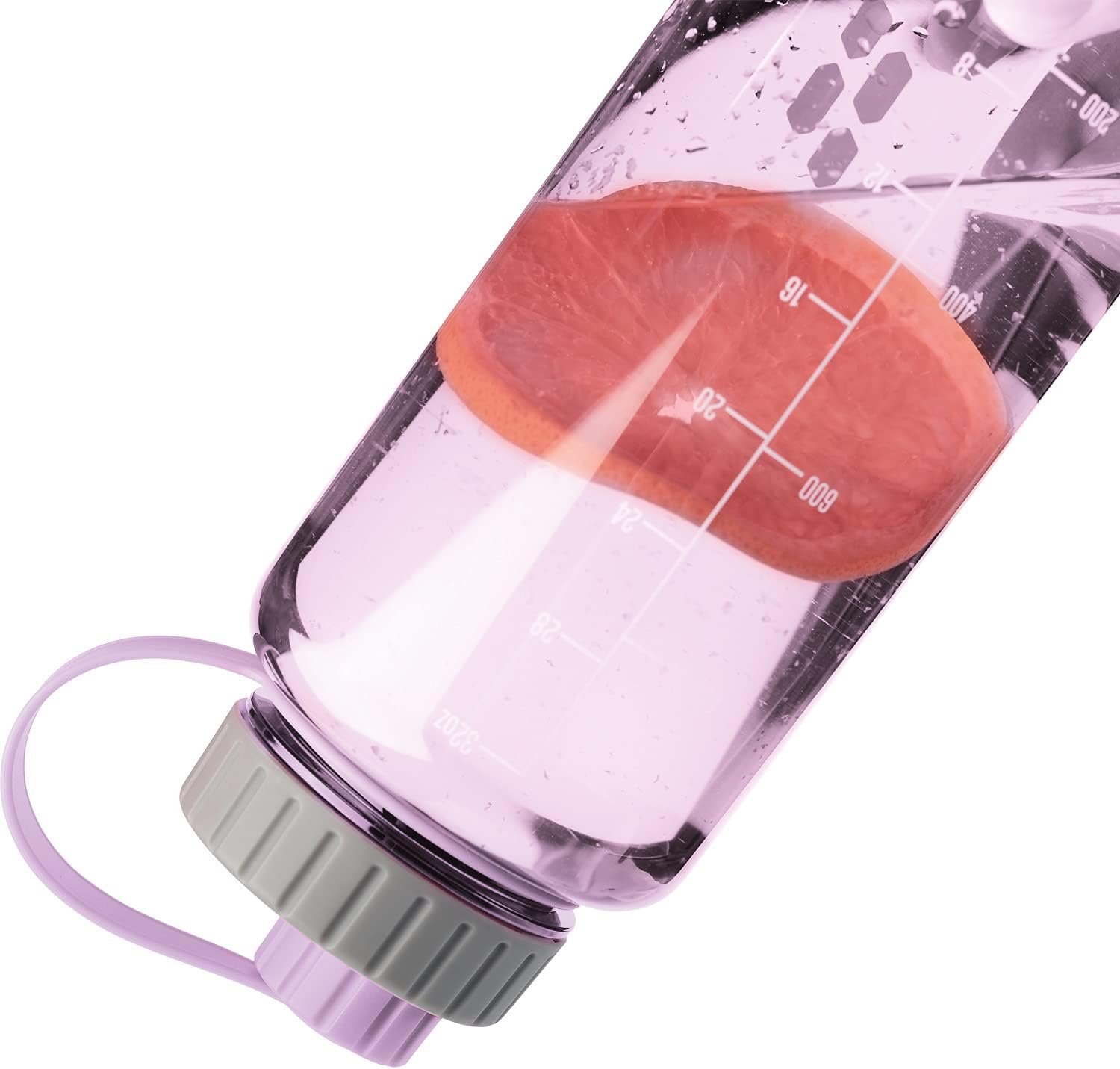 【Easy To Clean Water Bottle】 –Great water bottle for hydration. Our ounce marked bottles are durable enough for office,hiking, Fitness Yoga or Exercise at home. and rugged camping trips.Tethered strap for convenient carrying and traveling. Packing with box. Dishwasher safe on top rack.