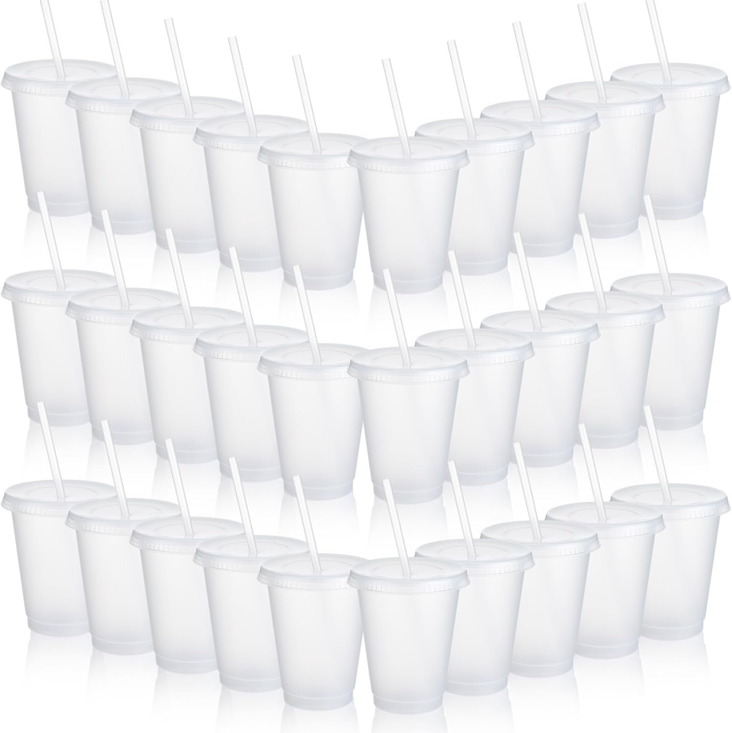 Sieral Cups with Straws and Lids Kids Tumbler with Straw Reusable Water Bottle Iced Coffee Travel Mug Adults Plastic Cups for Parties 16 oz (Clear Colors,30 Pack)