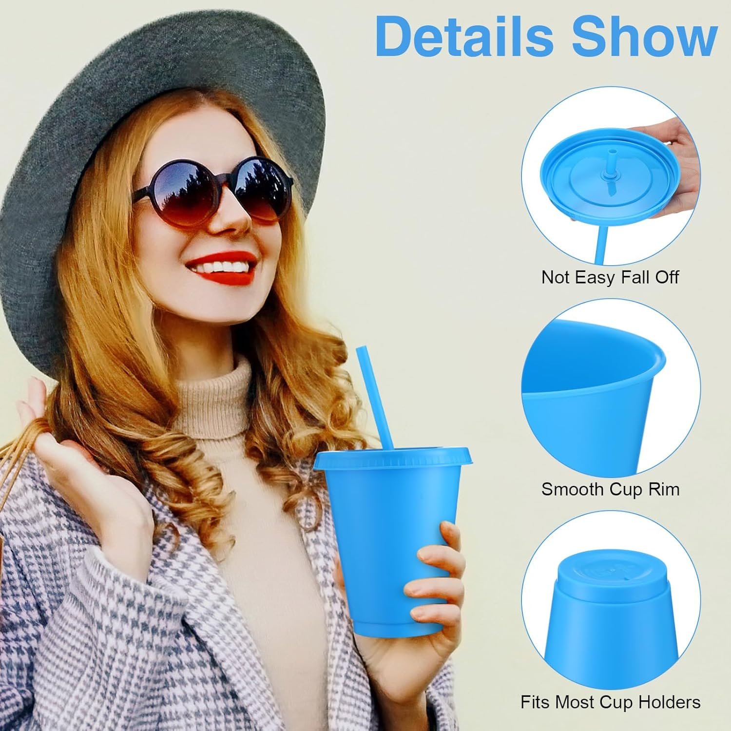 Sieral Cups with Straws and Lids Kids Tumbler with Straw Reusable Water Bottle Iced Coffee Travel Mug Adults Plastic Cups for Parties 16 oz(Classic Colors,15 Pack)