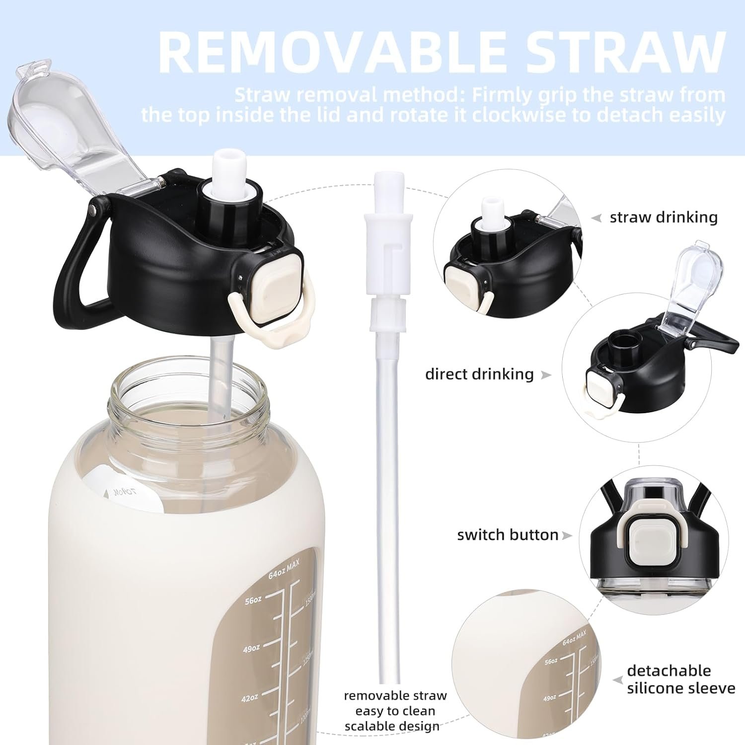 Removable Silicone Traw Design: This 32 oz glass water bottle features an innovative pop-top lid and a detachable silicone (not plastic) straw, twist the top of the straw to the right for easy removal, or to the left to secure it to the lid. Innovative design of straw, easy to use and clean