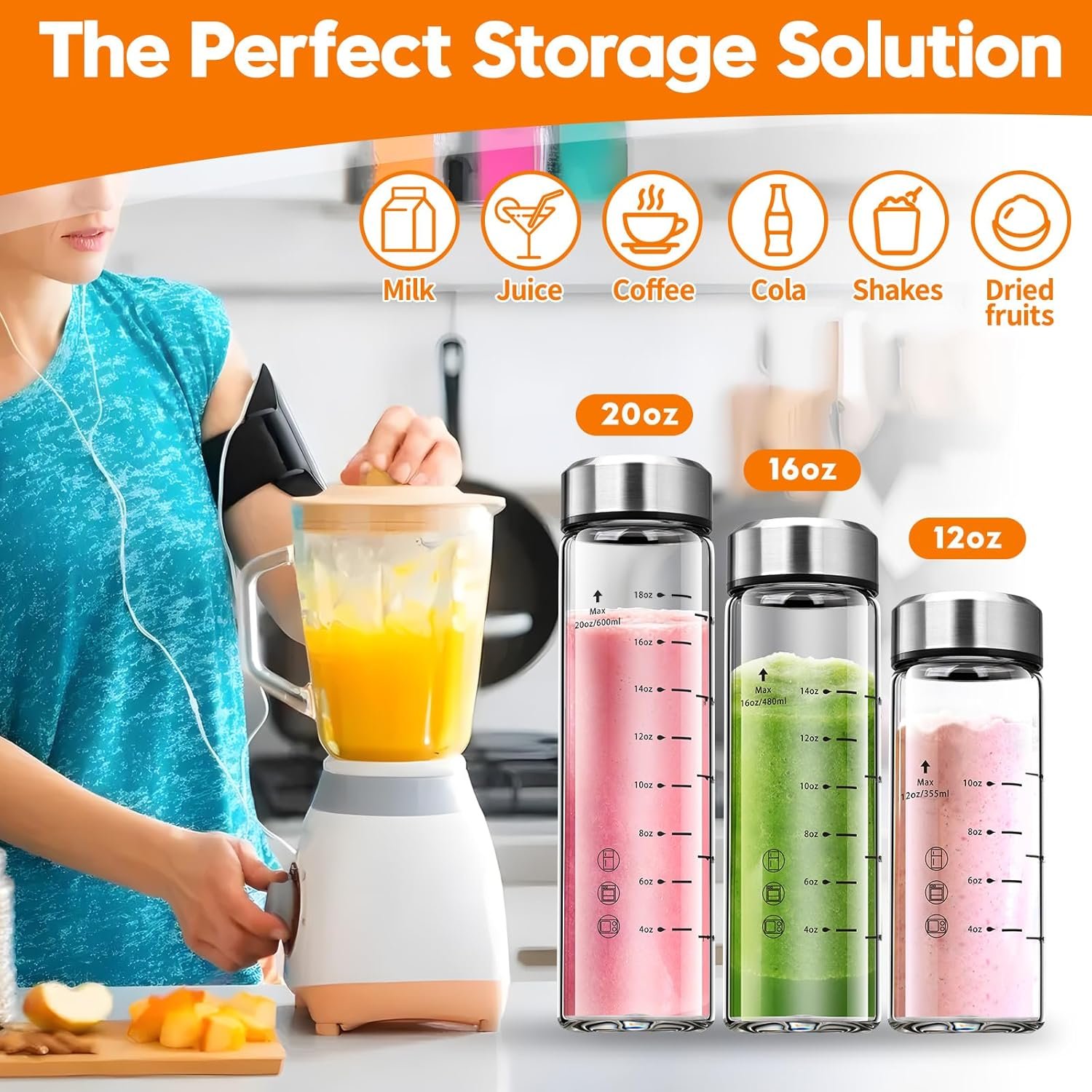 Wide Mouth: Featuring wide mouths with convenient measurement markings, our glass juice bottles are designed for user-friendliness. The wide-mouth design simplifies cleaning—these bottles are also dishwasher safe. Available in 12oz, 16oz, and 20oz sizes, each bottle is crafted from high-quality borosilicate glass and comes equipped with stainless steel lids that provide a leak-proof seal