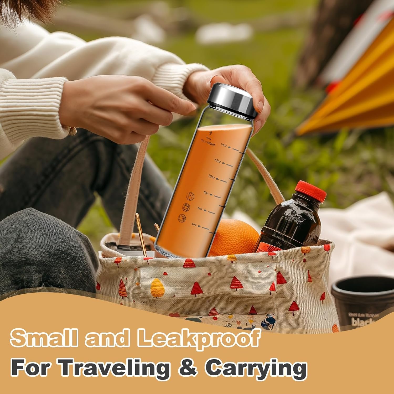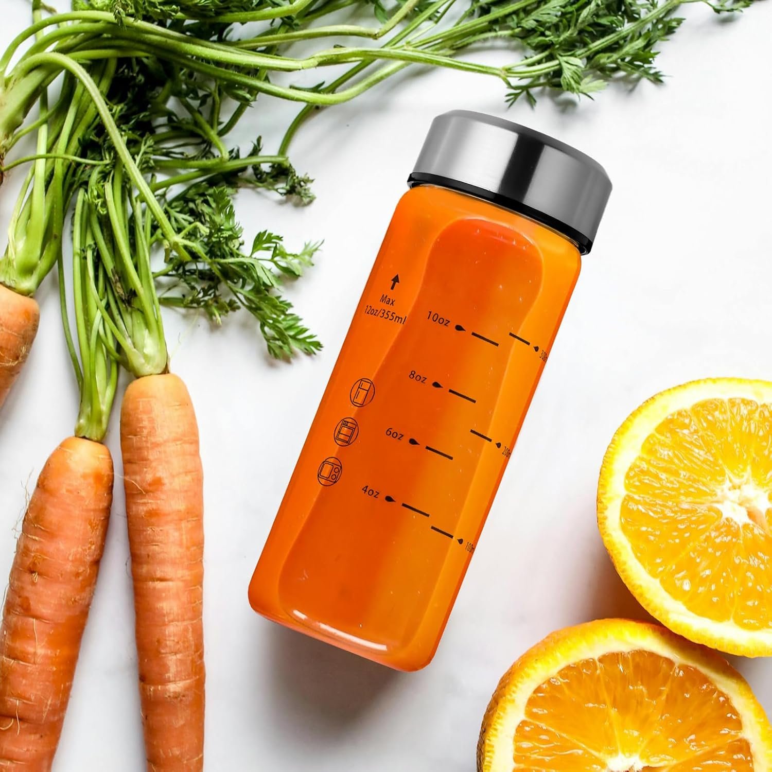 SPECIAL DESIGN : With wide mouths and convenient measurement markings, our glass juice bottles are designed for ease of use. It’s easier than ever to take your healthy homemade juices and smoothies with you when you carry them in your glass juice bottles. These glass bottles can be placed right next to you in the car, in the cup holder, ready for use on the go