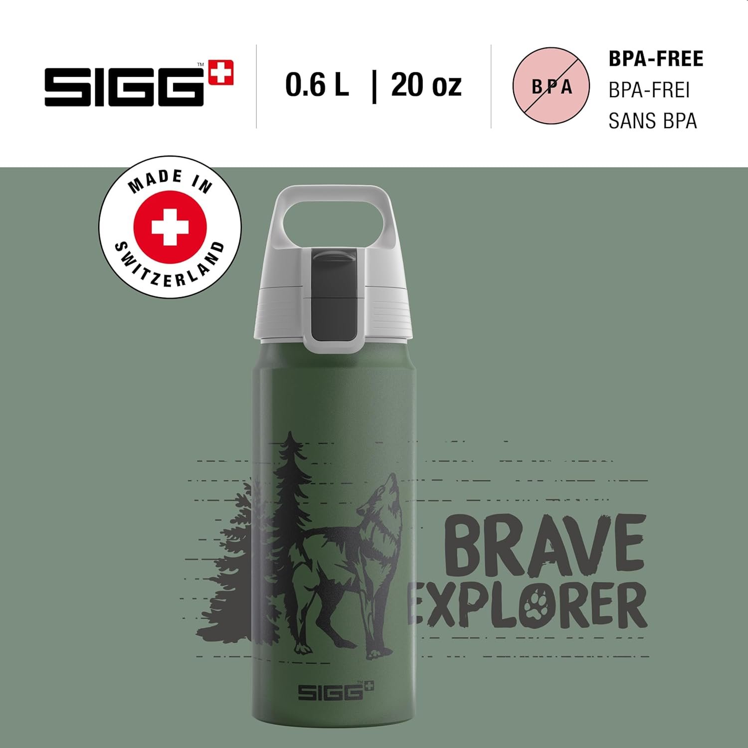 SIGG – Aluminium Water Bottle for Children – WMB One Brave Wolf – Suitable for Carbonated Drinks – Leak-Proof – Light as a Feather – BPA-Free – ClimatePartner Certified – Sports & School – Green – 0.6