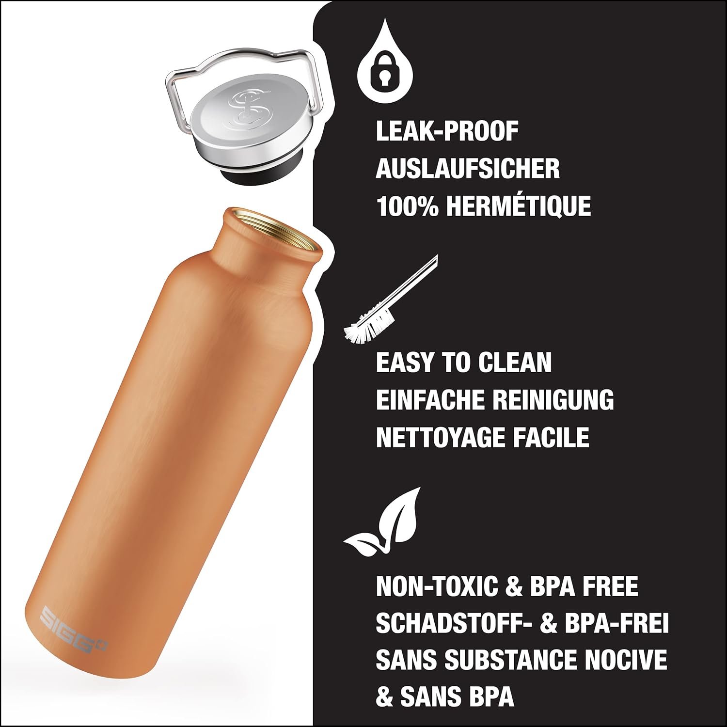 MADE IN SWITZERLAND: SIGG bottles up over 110 years of experience designing the finest drinking water bottles. Excellence and innovation meticulously manufactured from the combination of love of metal and design.