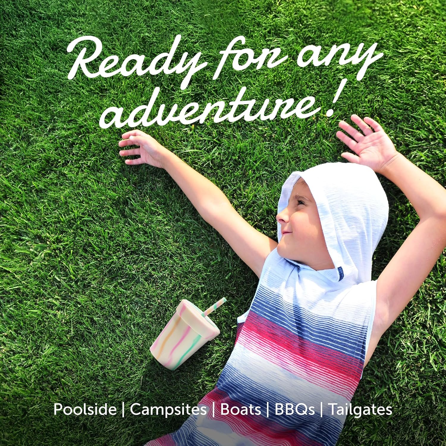 𝗨𝗡𝗕𝗥𝗘𝗔𝗞𝗔𝗕𝗟𝗘 𝗦𝗜𝗟𝗜𝗖𝗢𝗡𝗘 𝗧𝗨𝗠𝗕𝗟𝗘𝗥: This 8oz silicone tumbler in Taffy Twist is built for durability and everyday use, resisting drops, dents, and cracks while staying flexible and strong. Unlike a fragile glass tumbler, it offers long-lasting performance in a lightweight, reusable, and eco-friendly design perfect for kids and families.