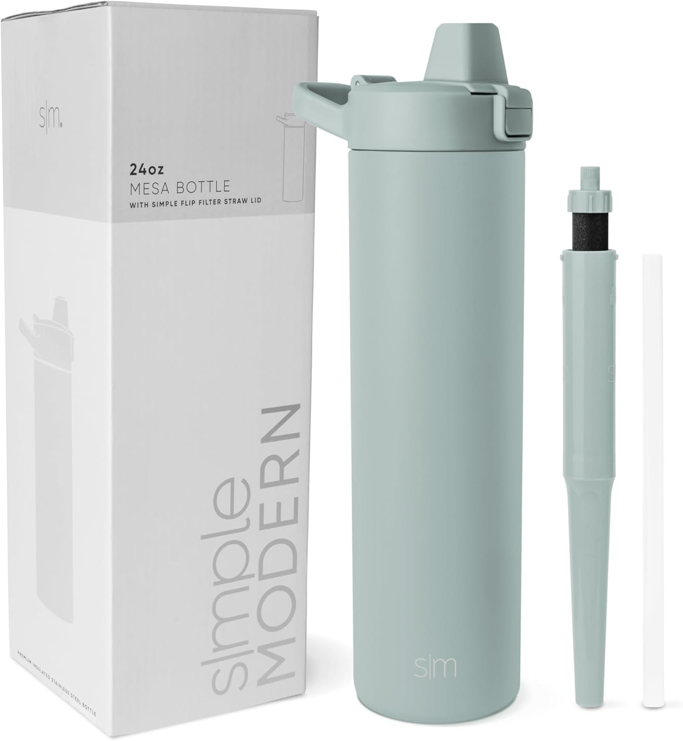 Simple Modern Filtered Water Bottle | Insulated Stainless-Steel Carbon Filter Travel Water Bottles | Reusable for Clean Drinking Water On The Go | 24oz, Sea Glass Sage