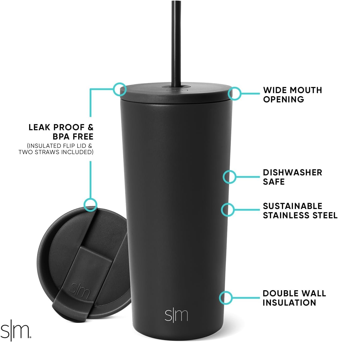 The Simple Modern Classic Tumbler is double walled and vacuum insulated to keep your drink hot or cold for hours. The cup comes with two lids, a straw lid and a flip lid so you can enjoy your favorite beverage the way you like. The Classic is made from 18/10 stainless steel and fits most cupholders.