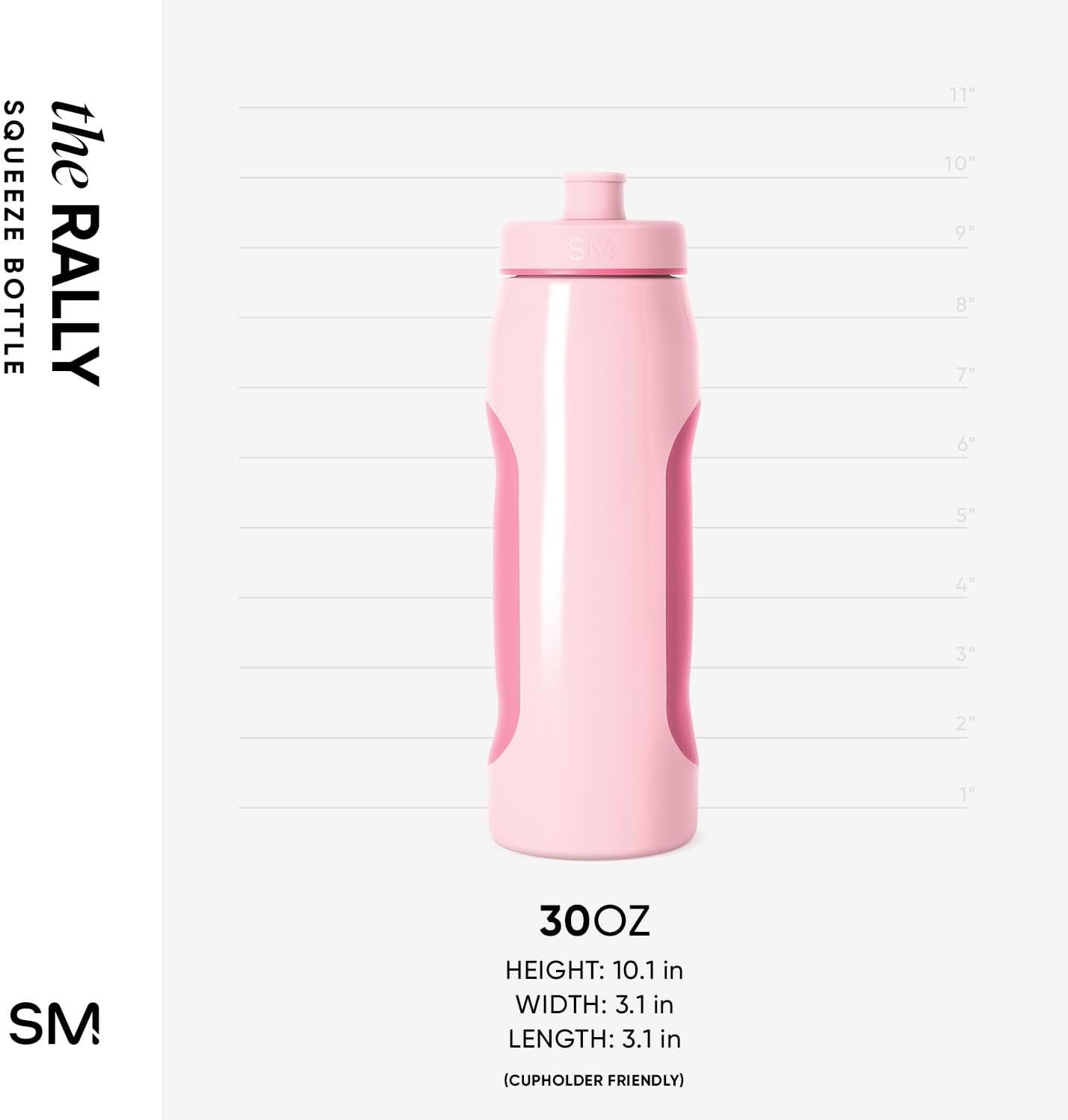 Stay hydrated on the go with the Simple Modern Rally Squeeze Water Bottle. Its easy-squeeze design delivers fast, effortless hydration, while the locking lid keeps it fully leakproof in your gym bag. A comfortable grip and ounce markers help you track intake or mix electrolytes with ease. Made from BPA-free materials, this 30oz bottle is top-rack dishwasher safe for quick cleaning. For ages 3 and up