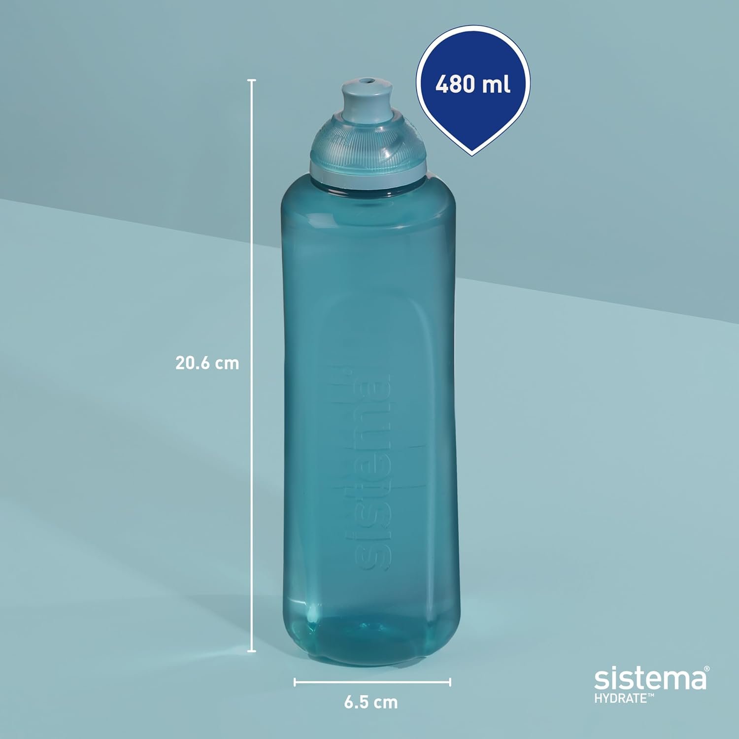 Sistema Swift Twist ‘n’ Sip Sports Water Bottles | 480 ml | Leakproof Kids Water Bottles | Made Using Recycled Plastic | BPA-Free | Teal Stone | 4 Count