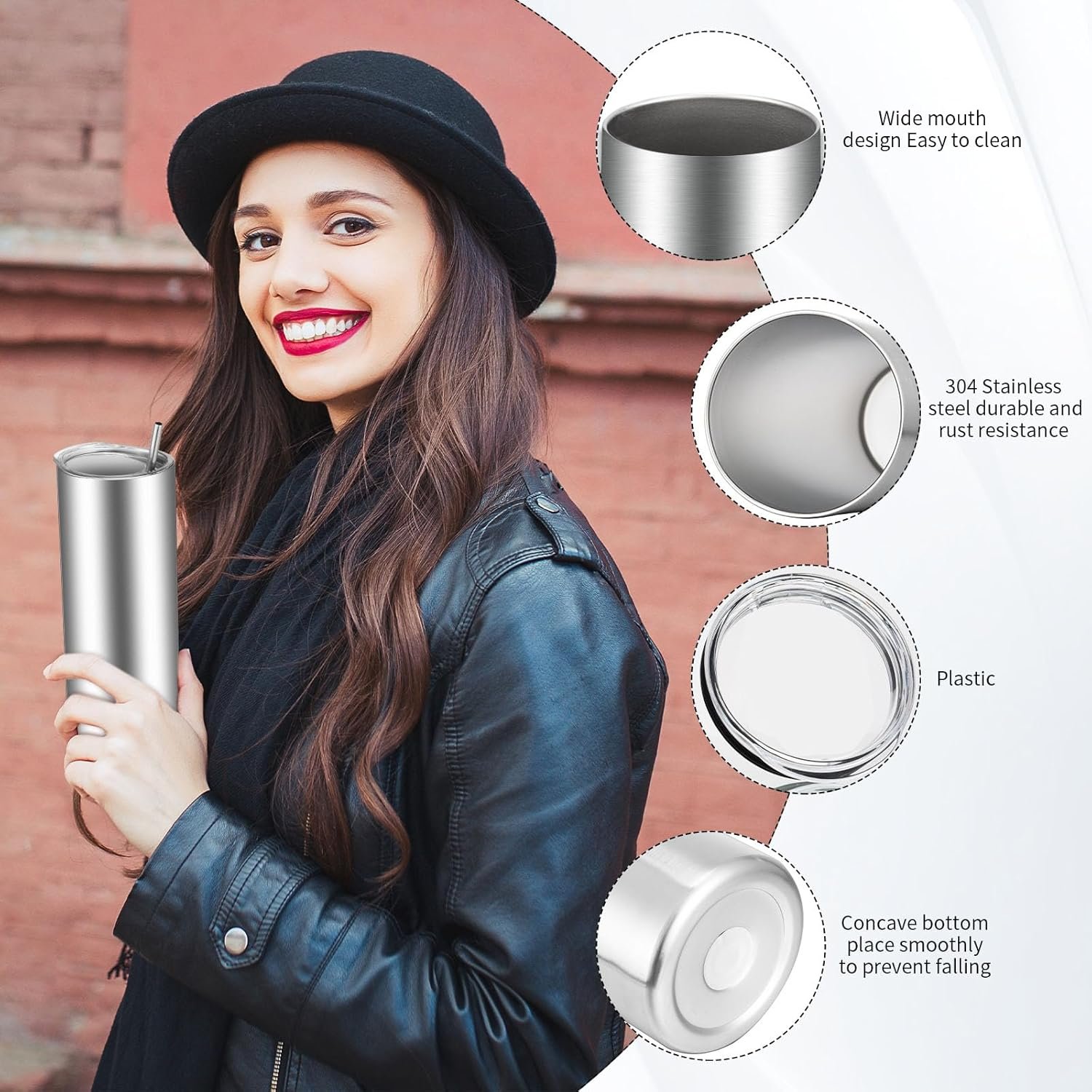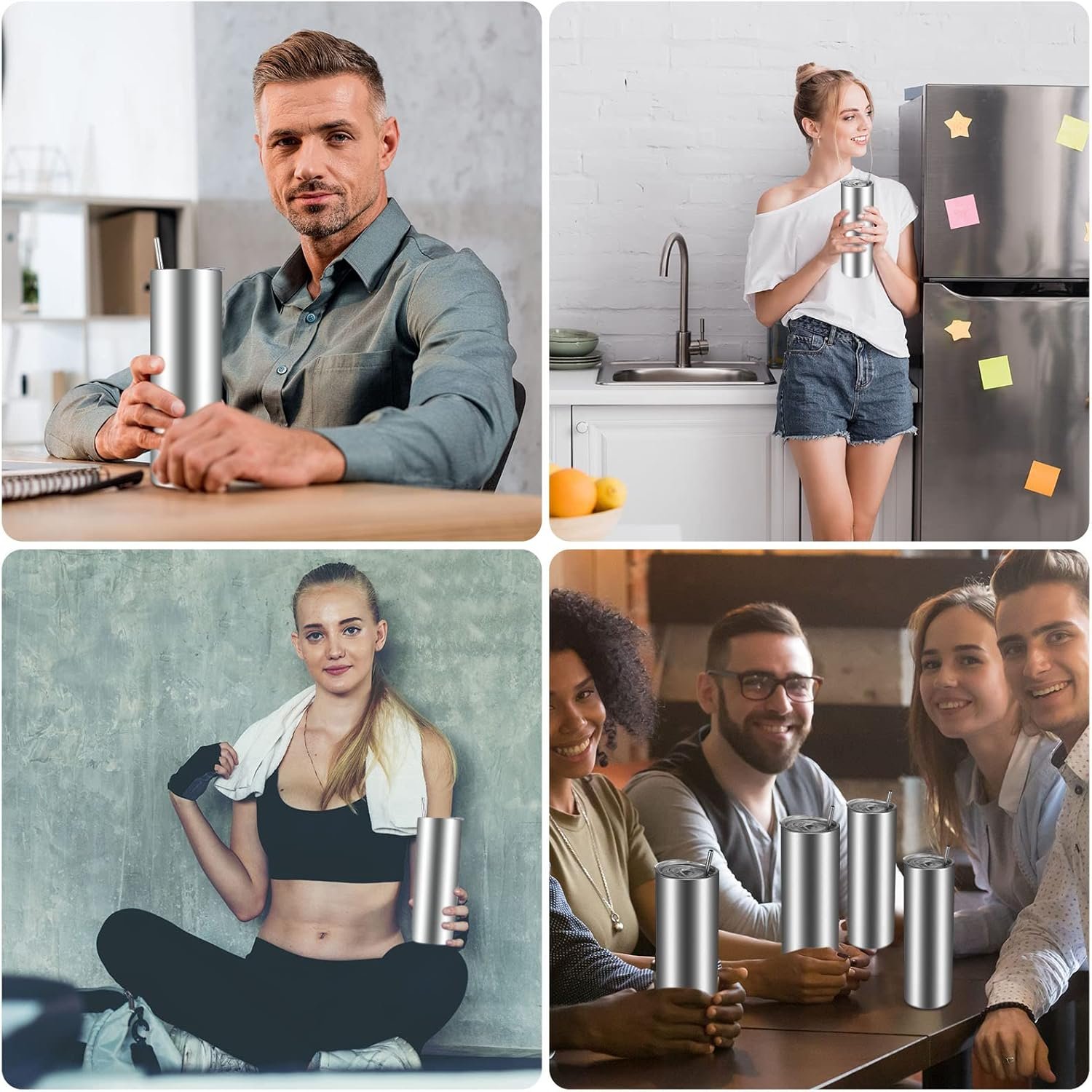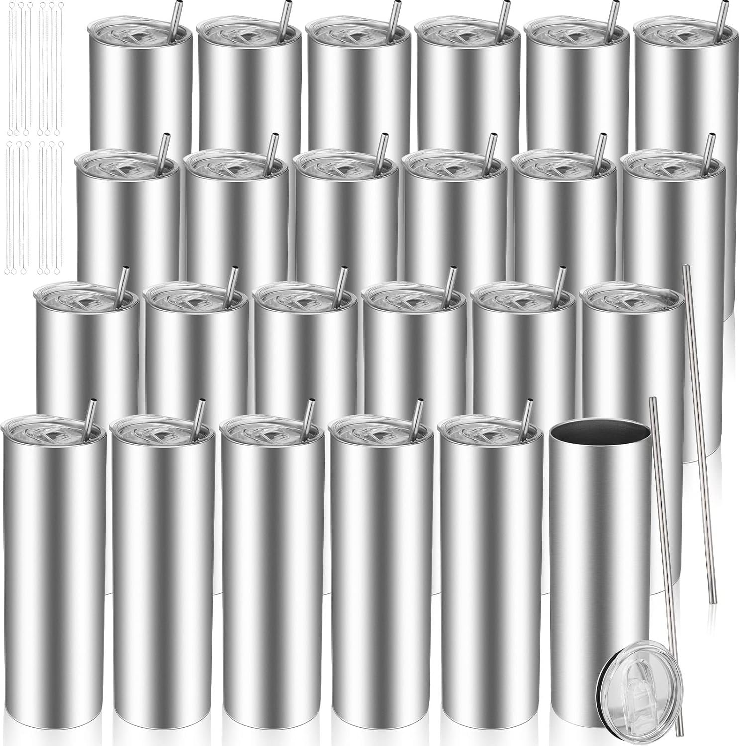 What You Get: you will get 24 packs 20 oz skinny tumbler set, and each blank tumbler is equipped with straw and straw brushes; Our stainless steel tumblers are double walled to keep cold drinks frosty cool and hot drinks toasty warm