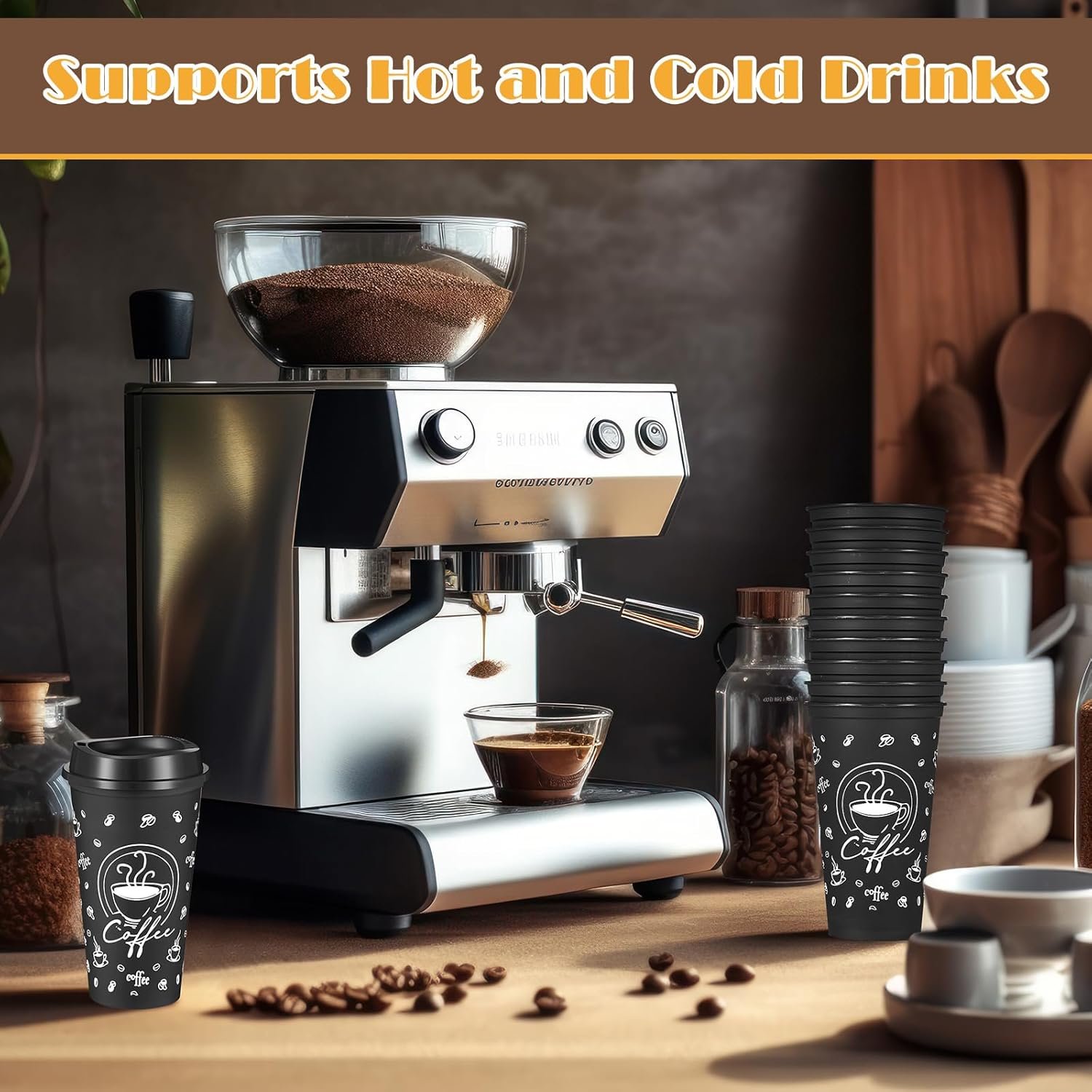Plastic cups for hot drinks have an added touch of elegance with their black color design inspired by coffee beans. It will undeniably add an aesthetically pleasing and sophisticated touch to your coffee drinking experience.