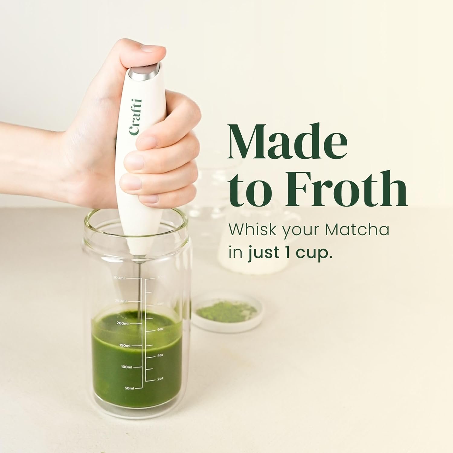 Volume Measurement Markings – Printed volume measurements to easily portion Matcha, tea, coffee, or smoothies.