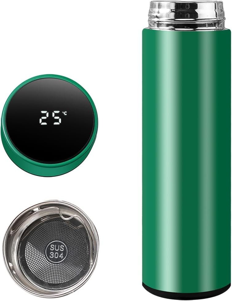 Smart Water Bottle Stainless Steel Vacuum Flask,Travel Mug with Smart LCD Touch Screen, Keep Hot Or Cold, Car Portable Travel Tea Coffee Vacuum Thermo Cup,Insulated Water Bottle (Green)