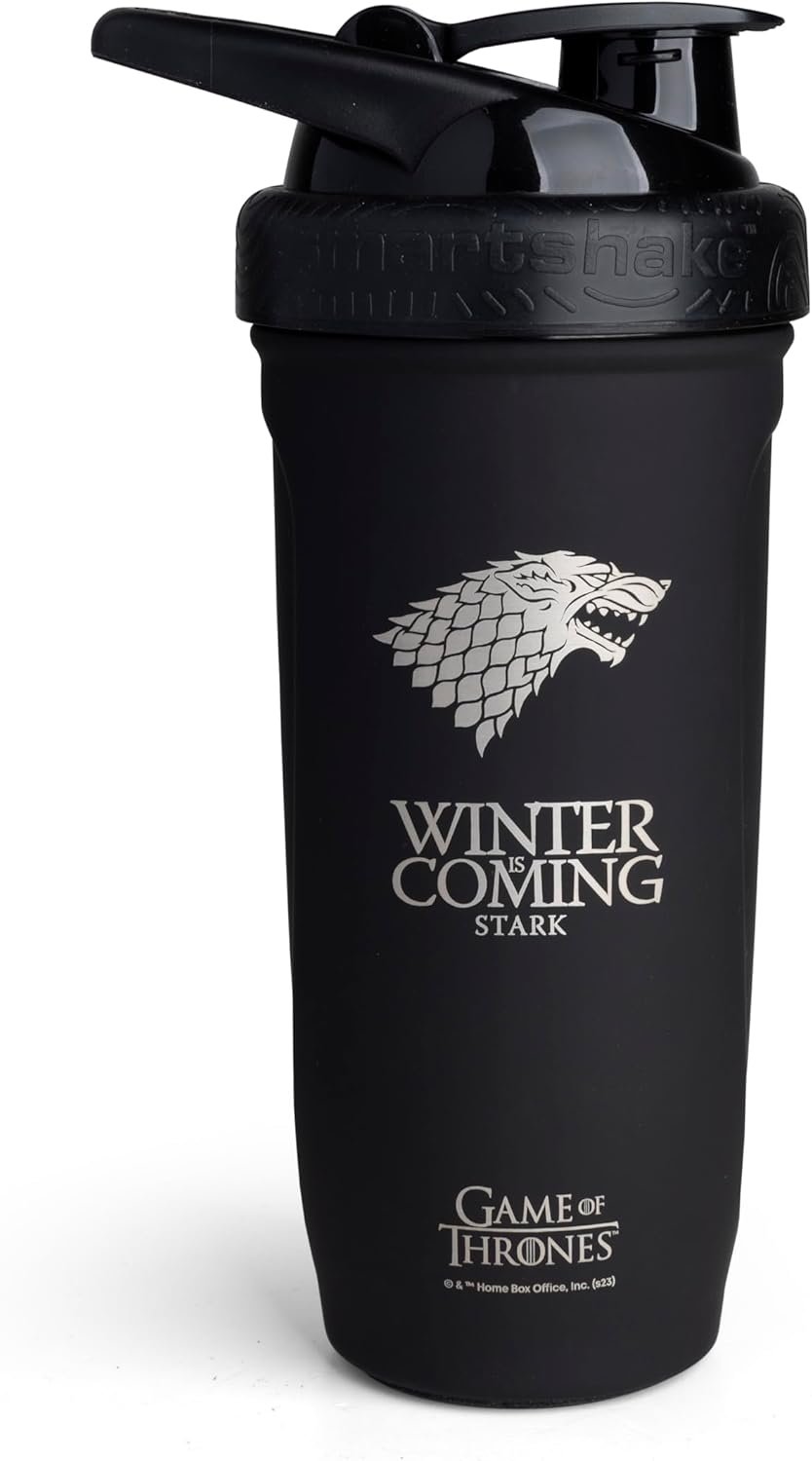 In the world of Game of Thrones, where power and honor are constantly at odds, Smartshake introduces a new series of stainless steel shaker bottles, each adorned with the emblems of the Great Houses. Choose your banner, and let it stand as a symbol of your allegiance, whether it’s the fiery dragon of House Targaryen or the fierce direwolf of House Stark. With every shake, you’ll feel the strength of the Seven Kingdoms coursing through you, ready to conquer your own battles, both in the gym and in the game of thrones.