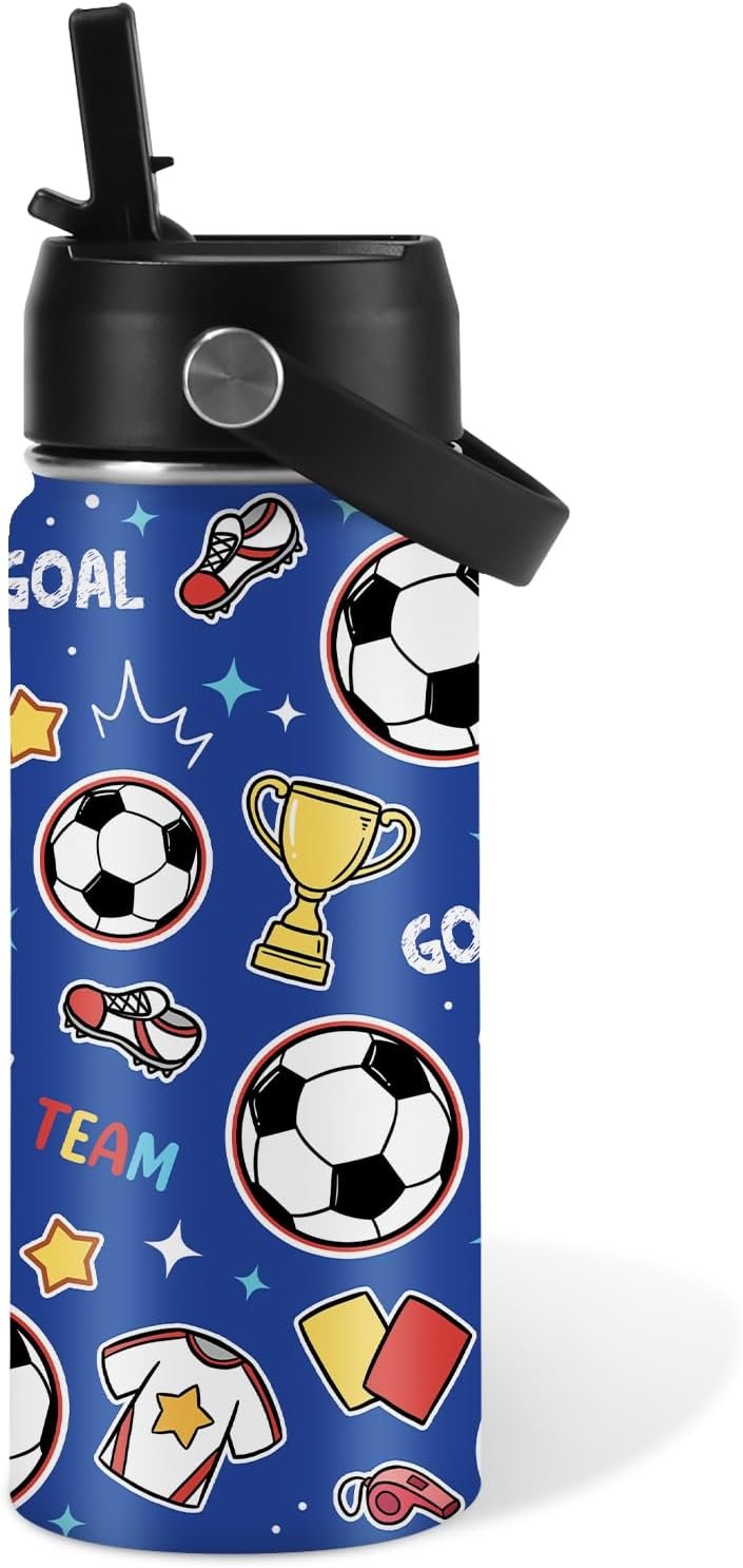 Soccer Gifts for Kids – 16 Oz Kids Water Bottle with Straw Lid, Stainless Steel Insulated Tumbler, Leak Proof, BPA-Free, for Girls, School, Travel – Soccer Lovers Children Birthday Gifts Cups(1pc)