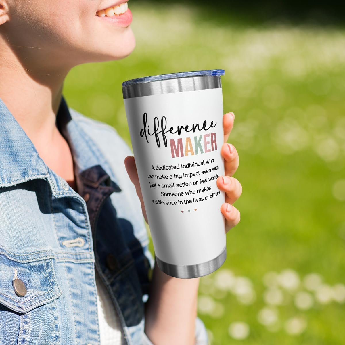 SOL VIBES Difference Maker Tumbler, 20 Oz Stainless Steel – Motivational, Office, Work Gifts for Women – Anniversary, Christmas, Birthday, Thank You Gifts for Boss, Leader, Employee, Coworker, Teacher