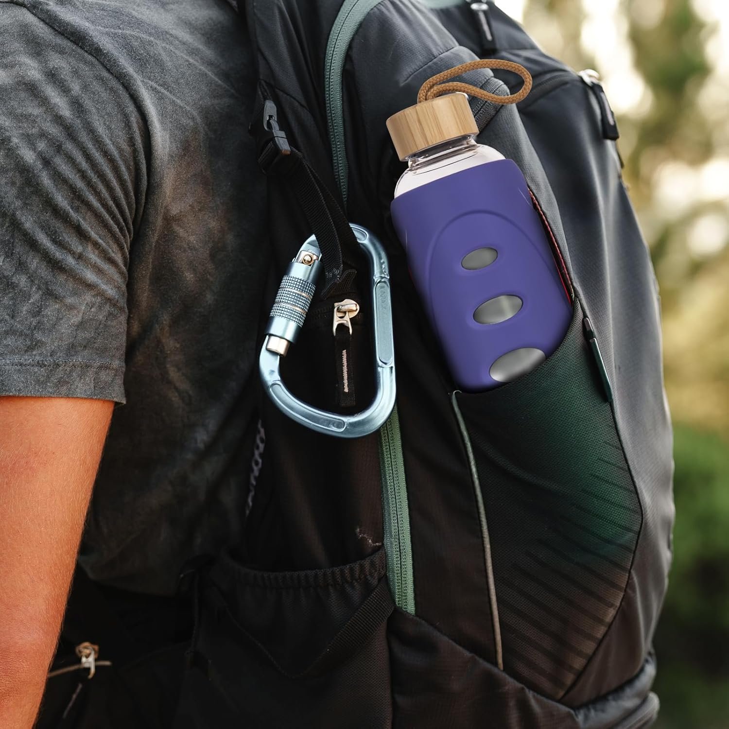 STYLISH AND PORTABLE : Our sleek design makes the glass water bottle has an ideal travel buddy and elegant appearance. Outer Silicone sleeve offers secure grip and helps protect against breakage.