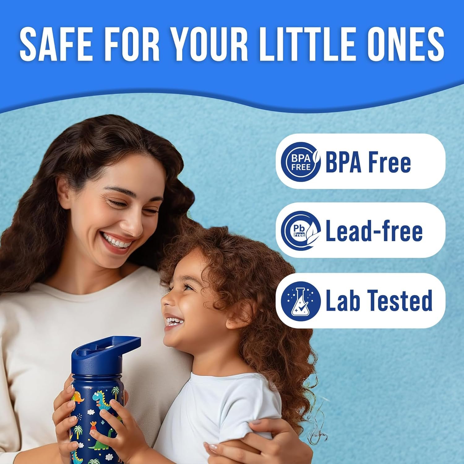 SAFE FOR KIDS: Our BPA-free, lab-tested metal water bottle with straw is perfect for kids. This insulated water bottle meets US safety standards, ensuring a safe, on-the-go hydration option for your child