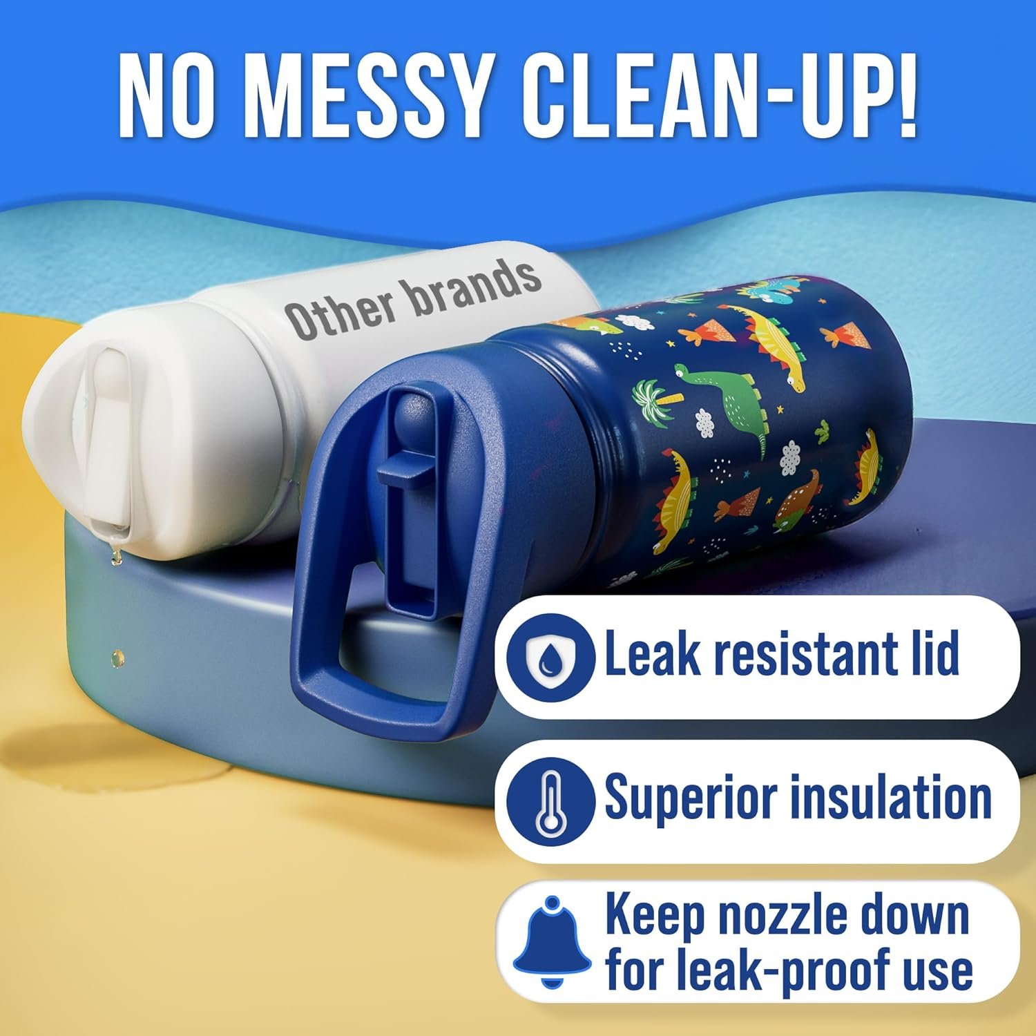 LEAK-PROOF DESIGN: Our 14 oz bottle is the perfect size for kids. With a leak-proof lid, it’s ideal for school. Ensure your child stays hydrated without spills with this handy water bottle perfect for kids of all ages.