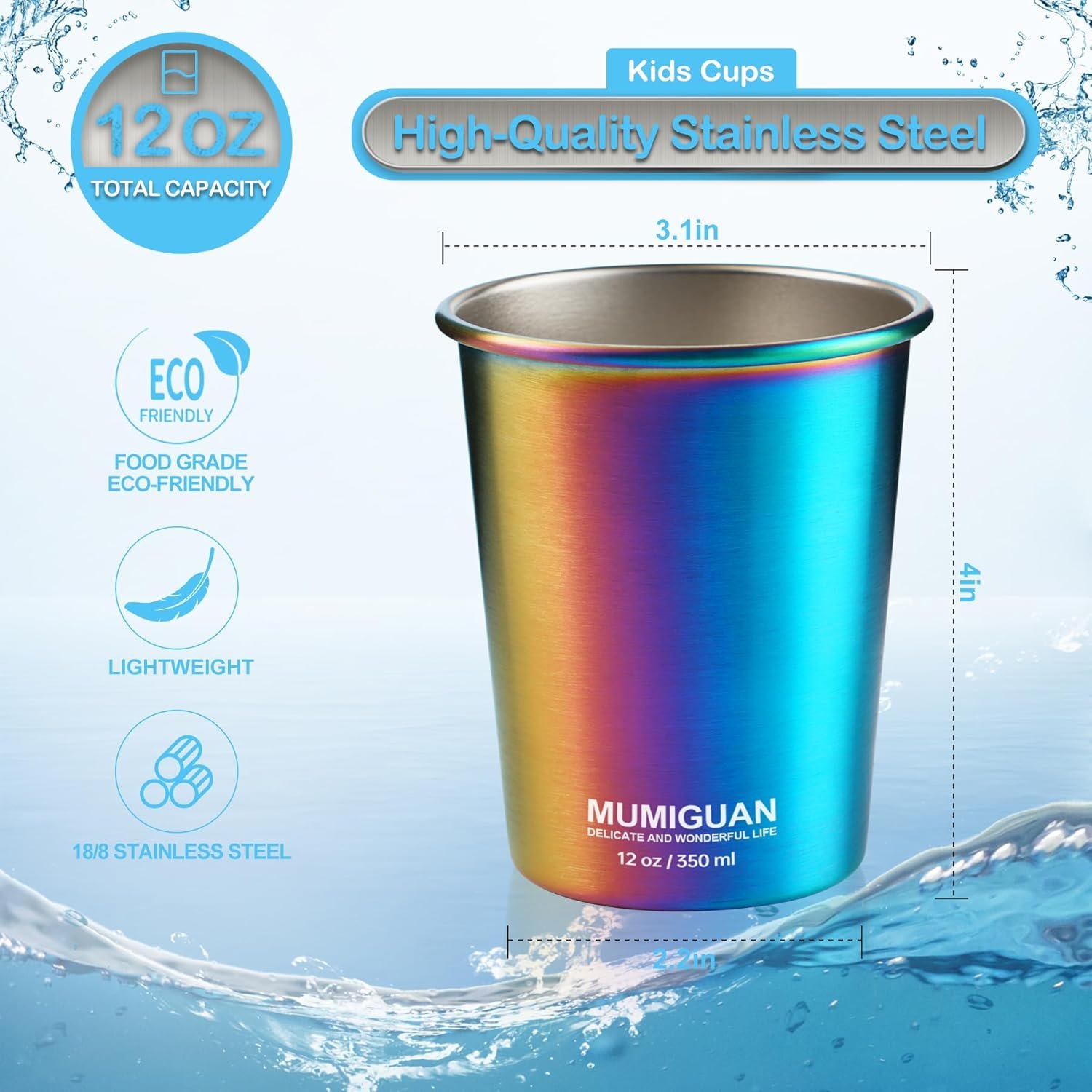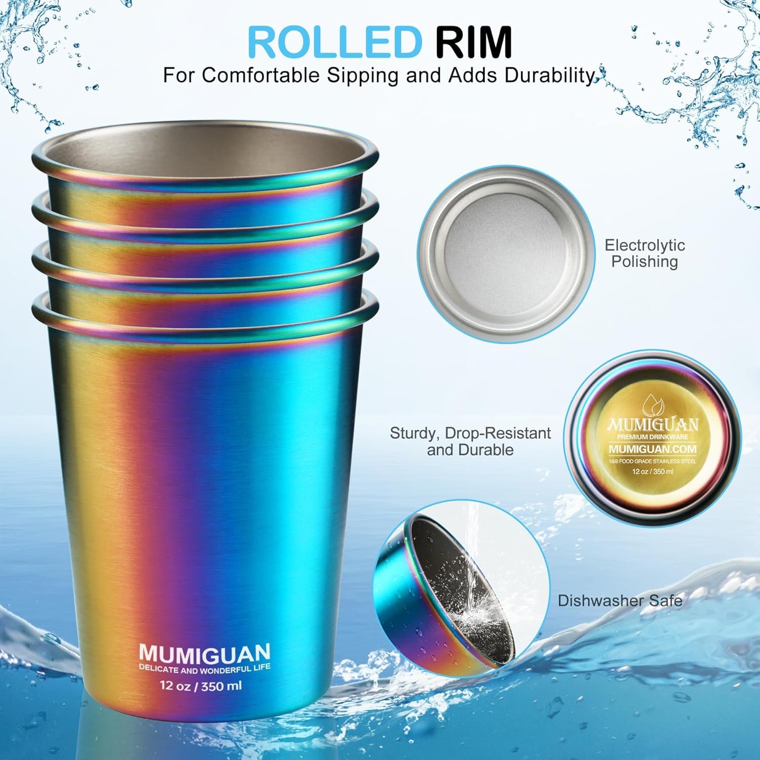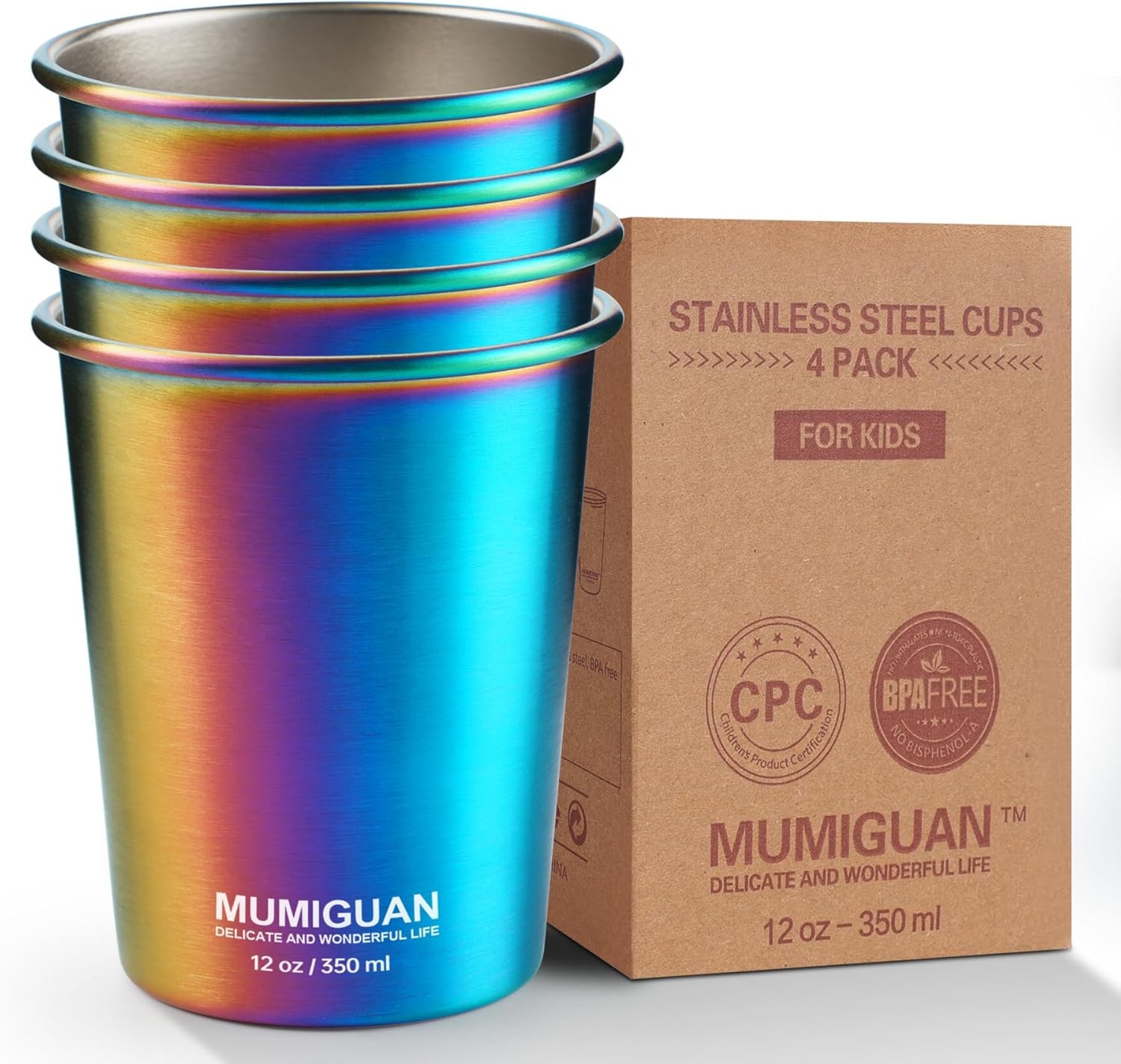 18/8 Food Grade Stainless Steel: MUMIGUAN cups are made from high-quality 18/8 food grade stainless steel material, ensuring they’re BPA-free and child-safe. The inner wall is treated with an electrolytic process, making it very easy to clean. The outer wall features a rainbow electroplating process, providing extra corrosion resistance and wear protection.