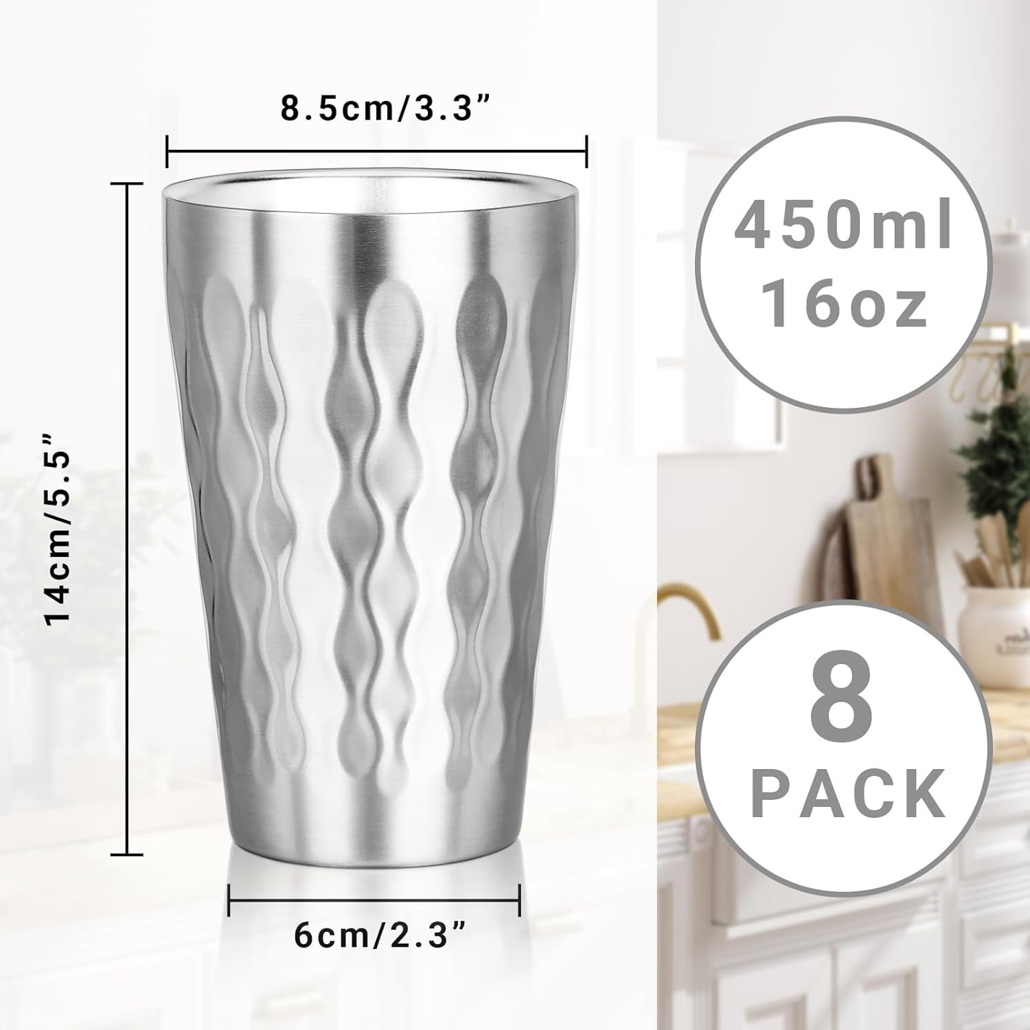 Sturdy Alternative to Glass or Plastic Cups: You will receive 16 oz 450ml stainless steel cups (8 pack). These fire diamond-patterned reusable insulated tumblers offer a robust and unbreakable solution to traditional glass or plastic cups. Crafted with high-quality stainless steel and a double-wall design, these metal cups are resistant to impact and wear, ensuring they will withstand daily use, outdoor adventures, and even accidental drops without losing their shape or functionality.