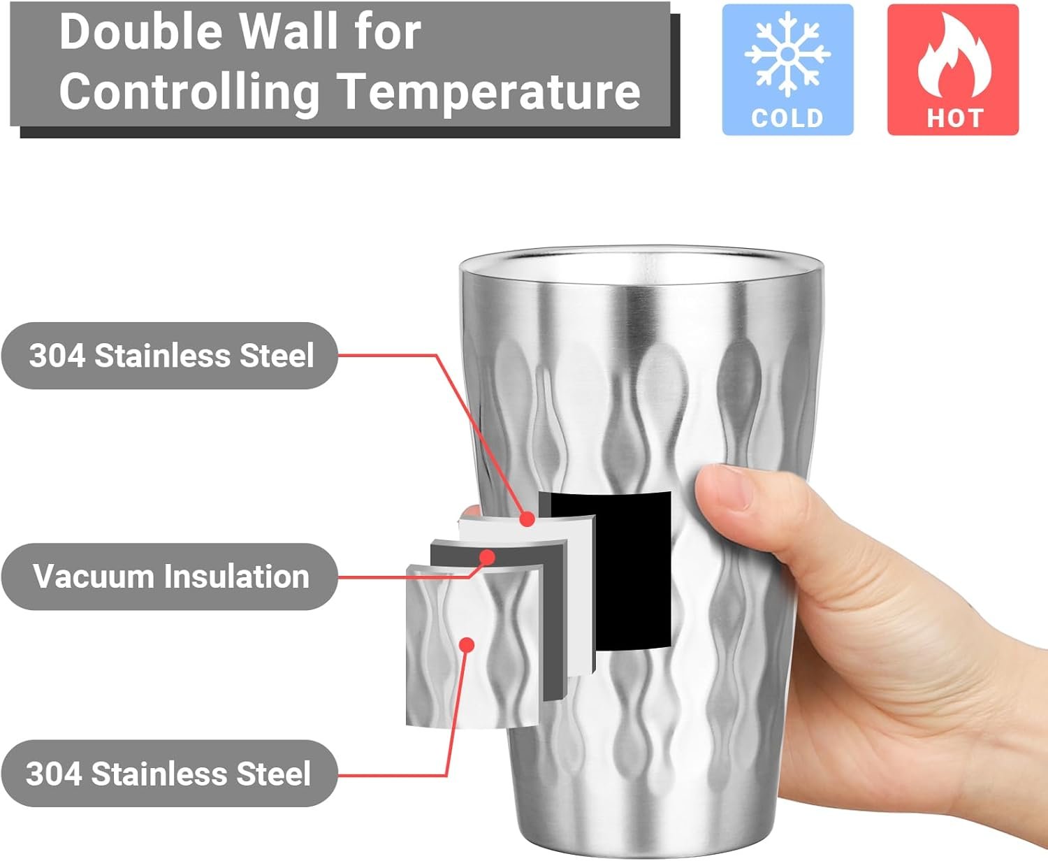Easy to Clean, Dishwasher Safe: Cleaning these stainless steel drinking glasses is a breeze! The smooth stainless steel surface is non-porous, preventing stains and lingering odors, and making handwashing effortless. Plus, our insulated stainless cups are dishwasher safe, saving you time and effort in your daily routine while maintaining their pristine appearance and hygiene.