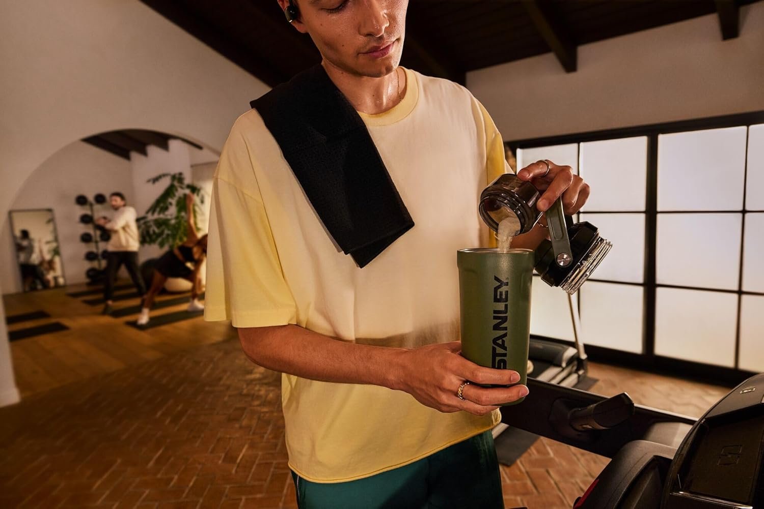 STANLEY Vitalize Shaker Bottle 20 oz | Leakproof Insulated Stainless Steel Shaker Cup | Base Storage and Twist On Fast Flow Lid | Protein Shakes and Pre Workout Powder | BPA-Free | Sage Grey