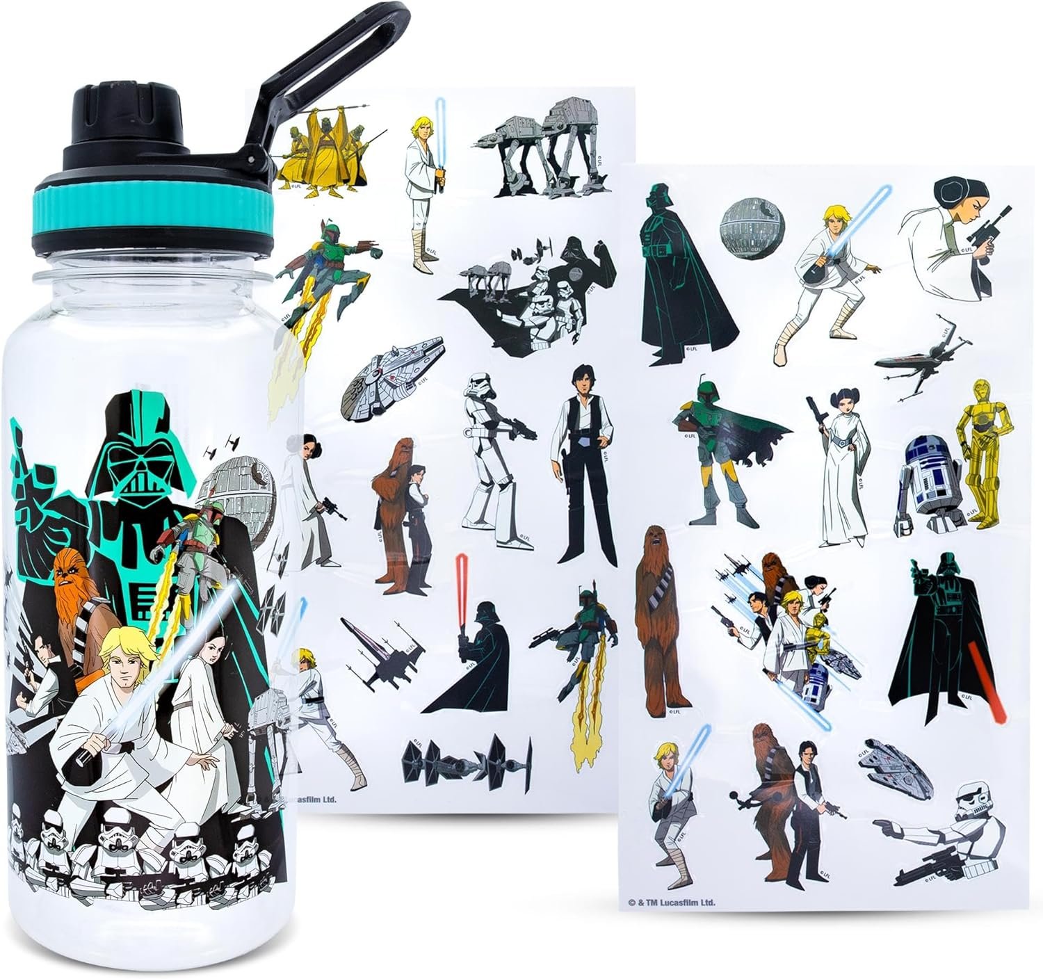 OFFICIAL STAR WARS COLLECTIBLE: Quench your thrist for cosmic adventure with this officially licensed Star Wars water bottle and sticker set. Ideal for Imperials and Rebels alike, it’s the perfect way to show your allegiance on the go.