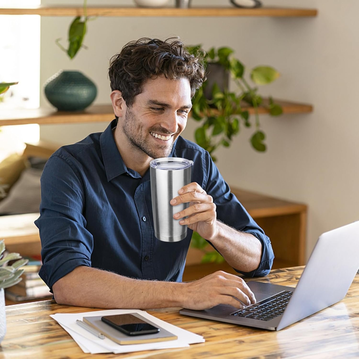 StarSpeed 20oz Tumbler Bulk with Lid, Stainless Steel Insulated Tumblers Double Wall Vacuum Insulated Travel Mug, Powder Coated Coffee Cups for Hot and Cold Drinks(Silver,1)
