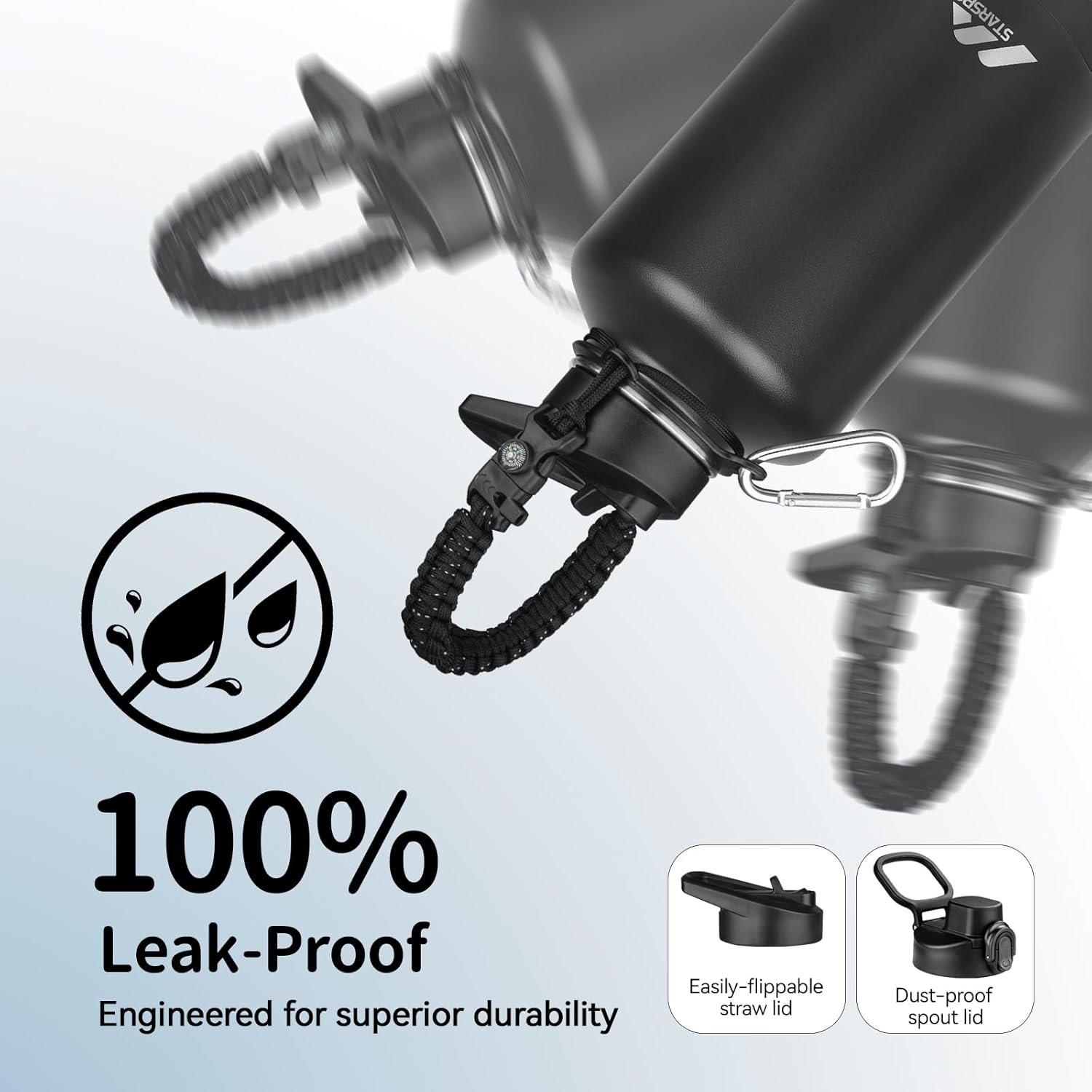 WHAT YOU WILL GET: 64oz stainless steel water bottle with with 2 lids(1 straw lids and 1 spout lids), 2 detachable straw and 1 straw brush,1 paracord handle. We offer Continuous After-sales Service and customer satisfaction against any leakage or insulation failure.