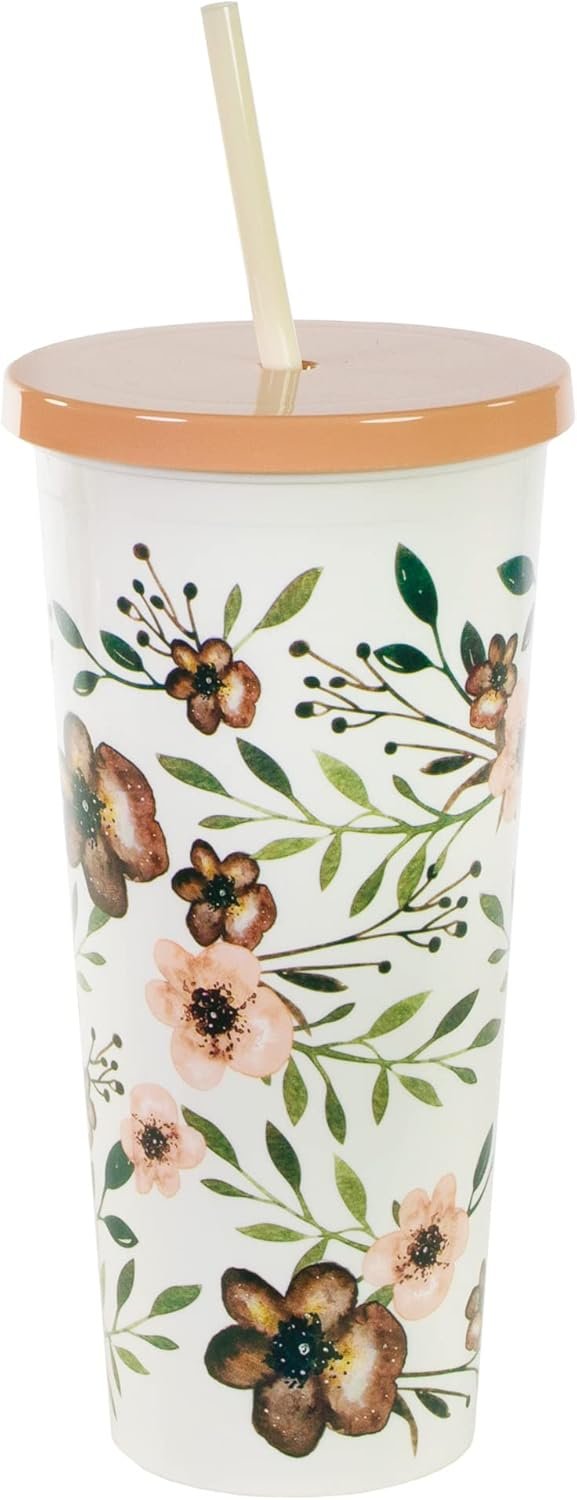 Simple Design: BPA-free tumbler features a multicolored floral design with a coordinating lid and straw. The slim design is easy to carry and fits in most cup holders! Includes 1 tumbler in your chosen print with a lid and straw.