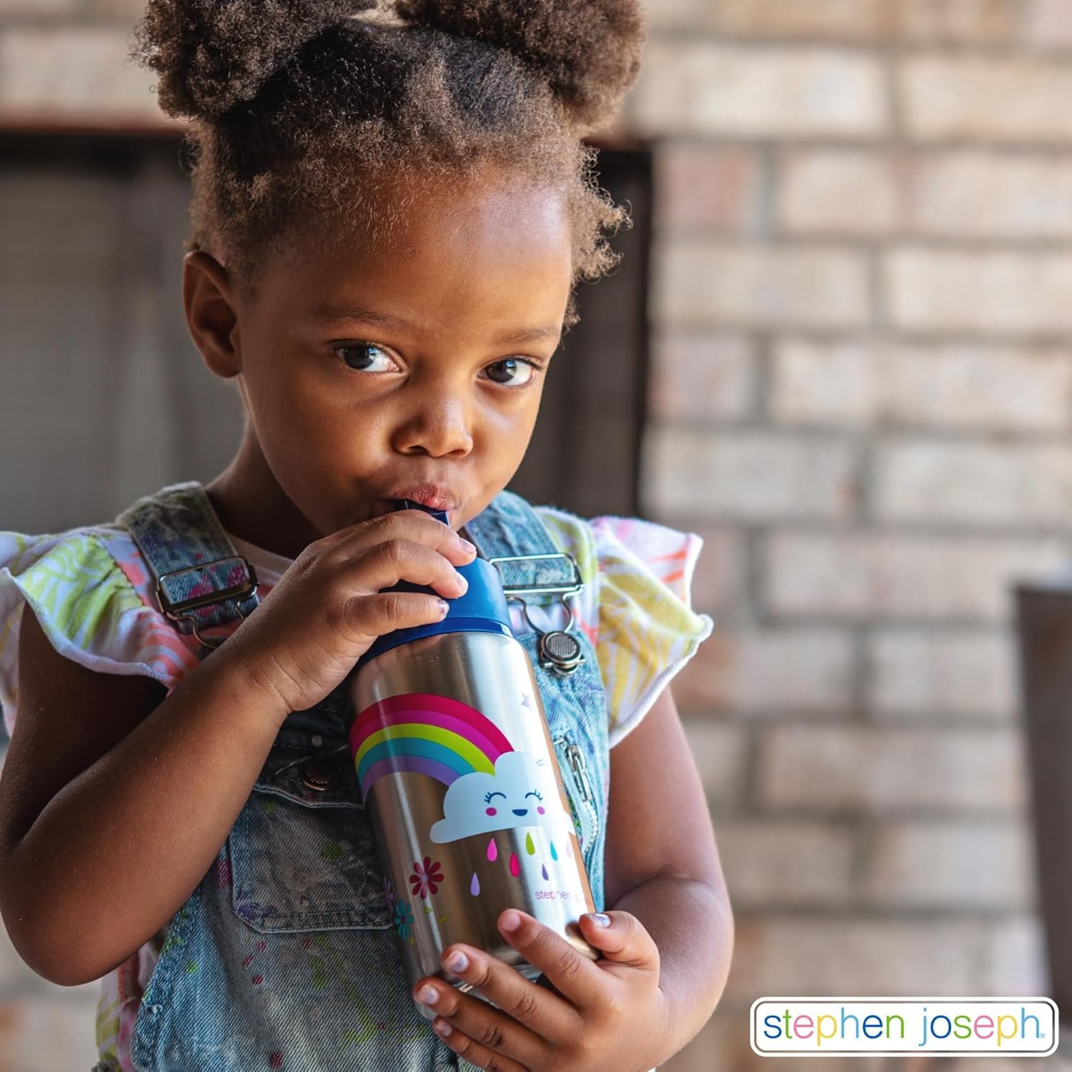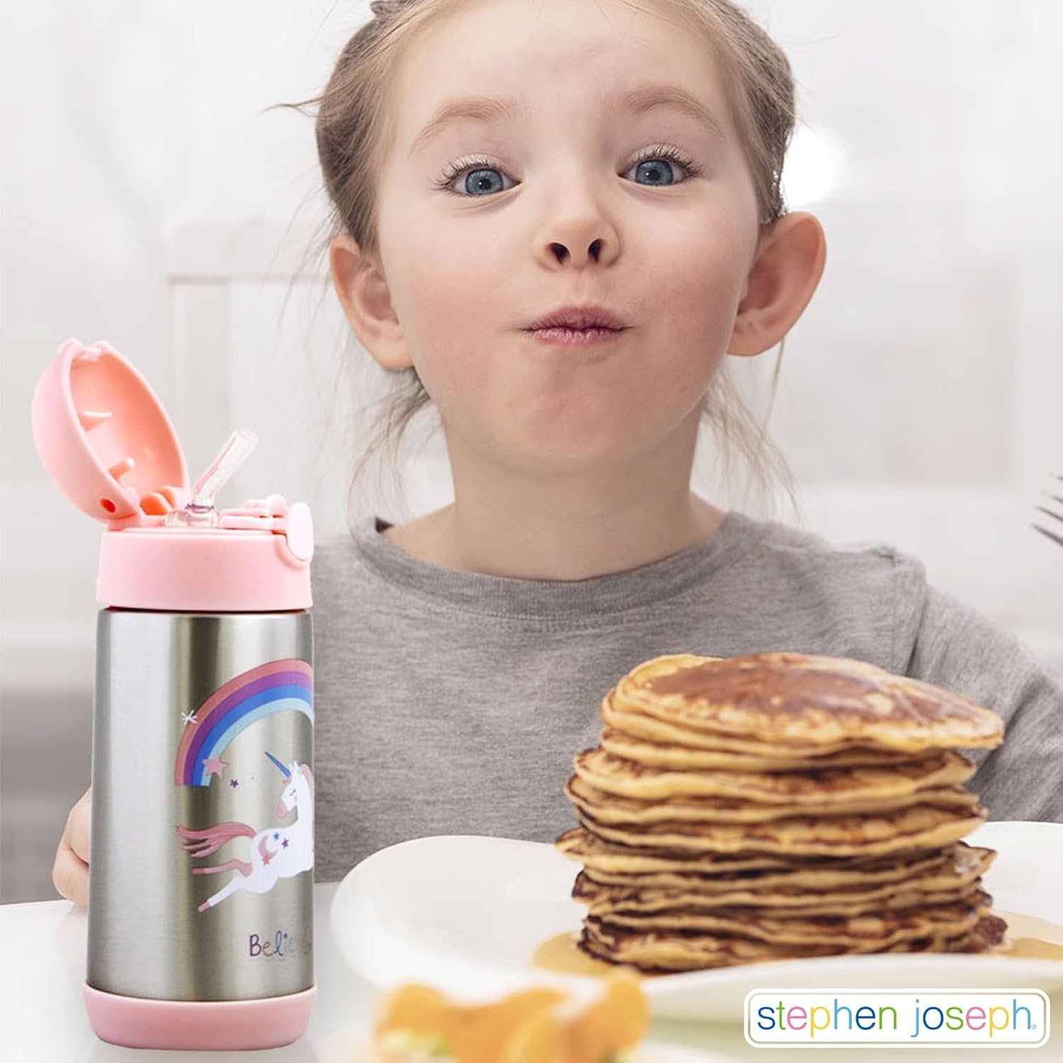 Stephen Joseph Double Wall Stainless Steel Bottles, Insulated Water Bottle for Kids Toddlers, Vacuum Insulated Bottle with Straw, BPA-Free Water Bottle – 11.8 Ounces, Farm